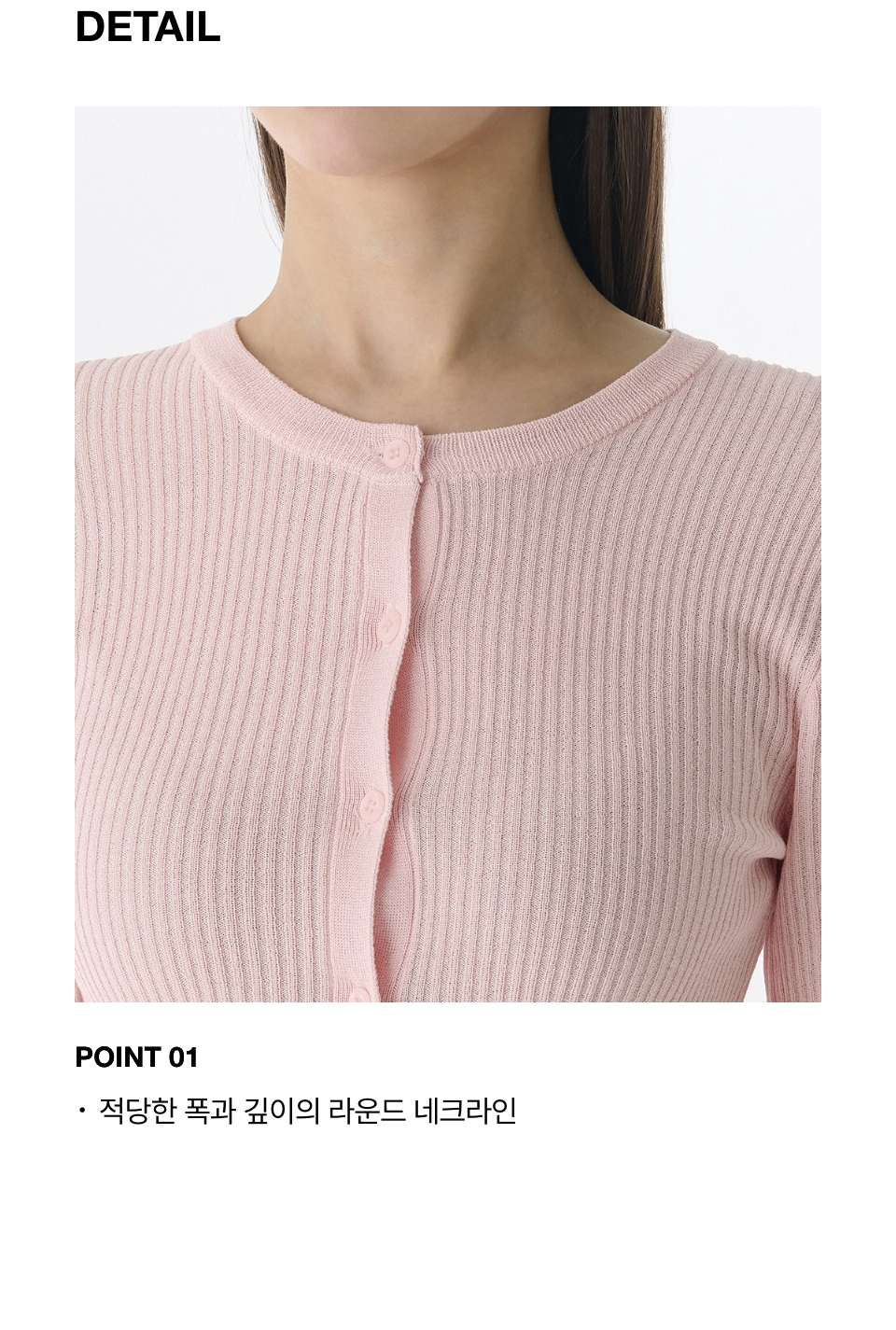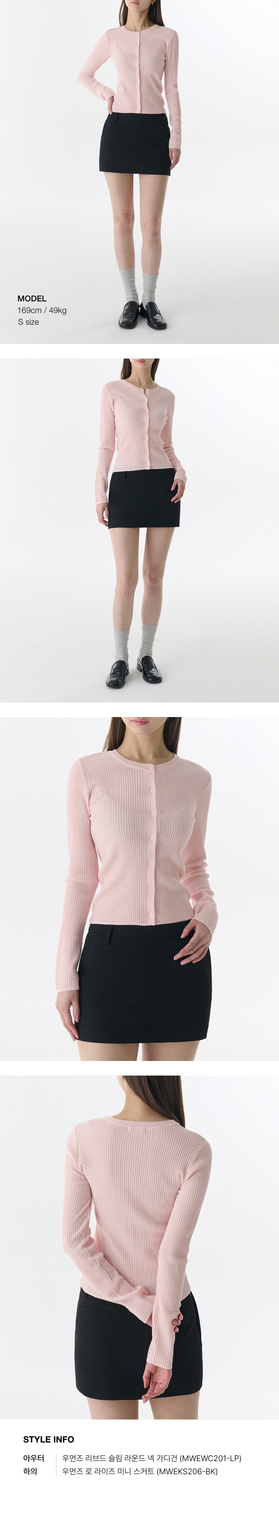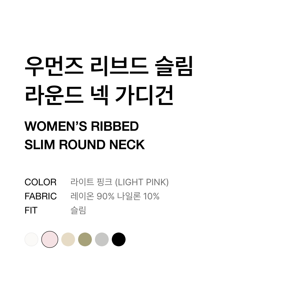우먼즈 리브드 슬림 라운드 넥 가디건 [라이트 핑크]