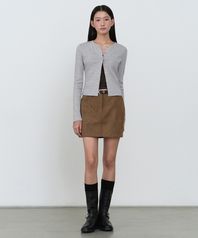우먼즈 리브드 슬림 라운드 넥 저지 가디건 [멜란지 그레이]