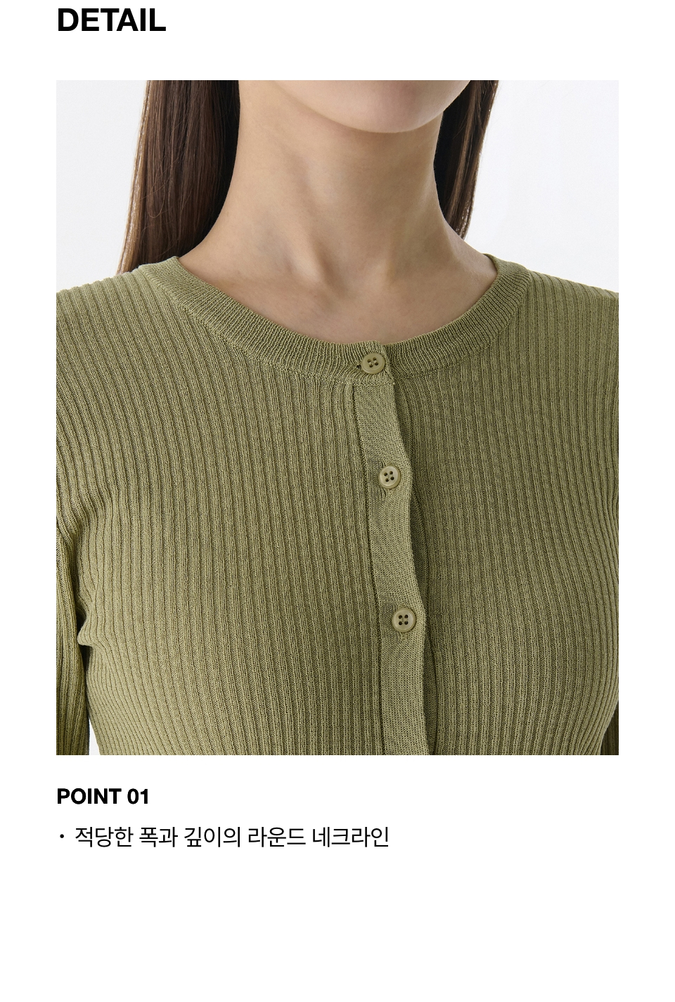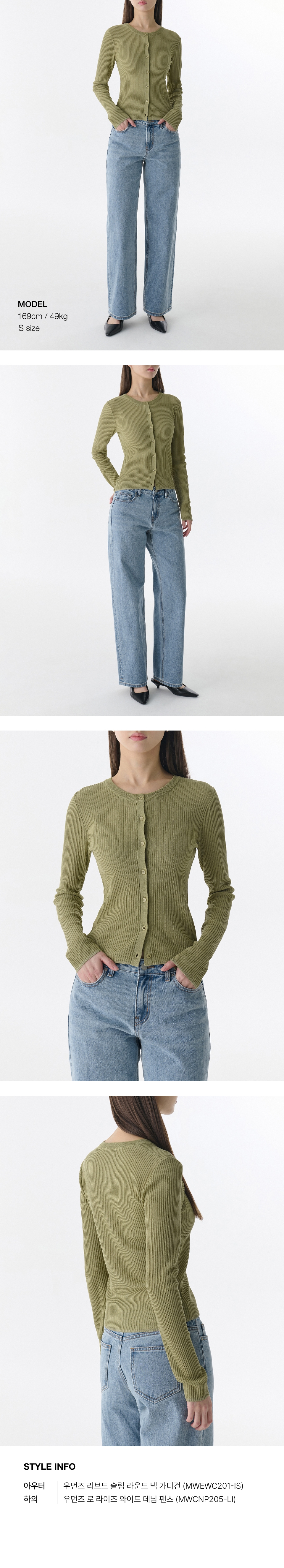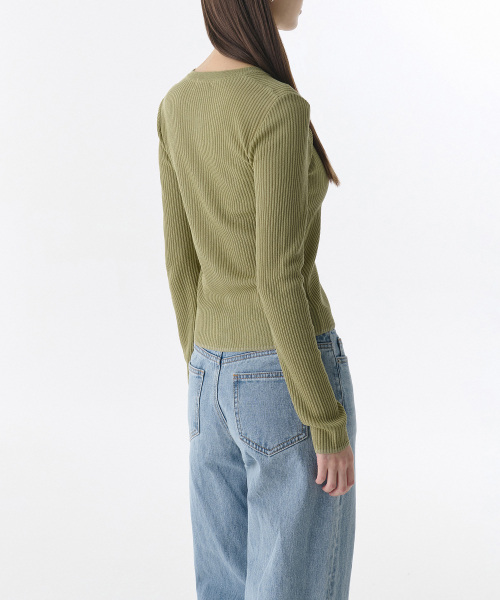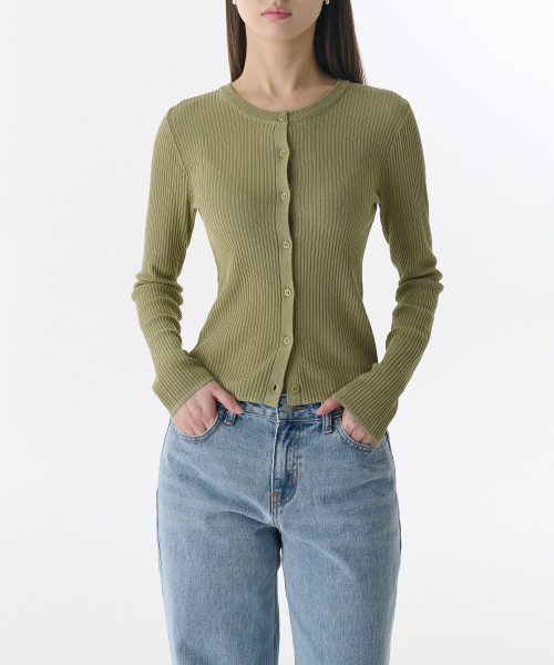 우먼즈 리브드 슬림 라운드 넥 가디건 [라이트 모스]