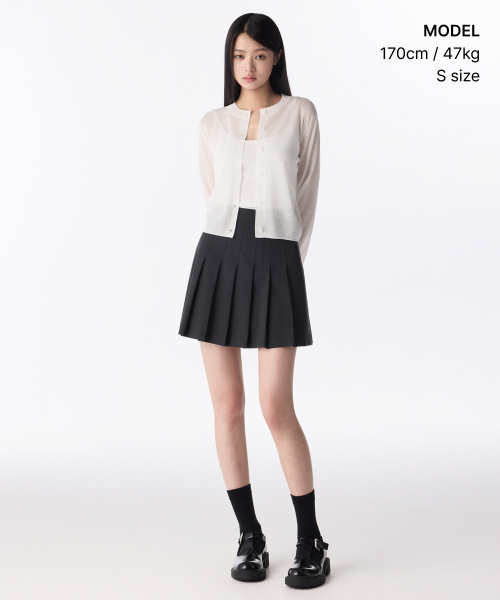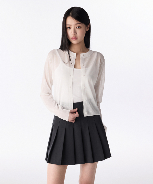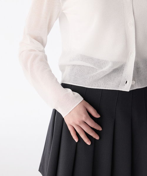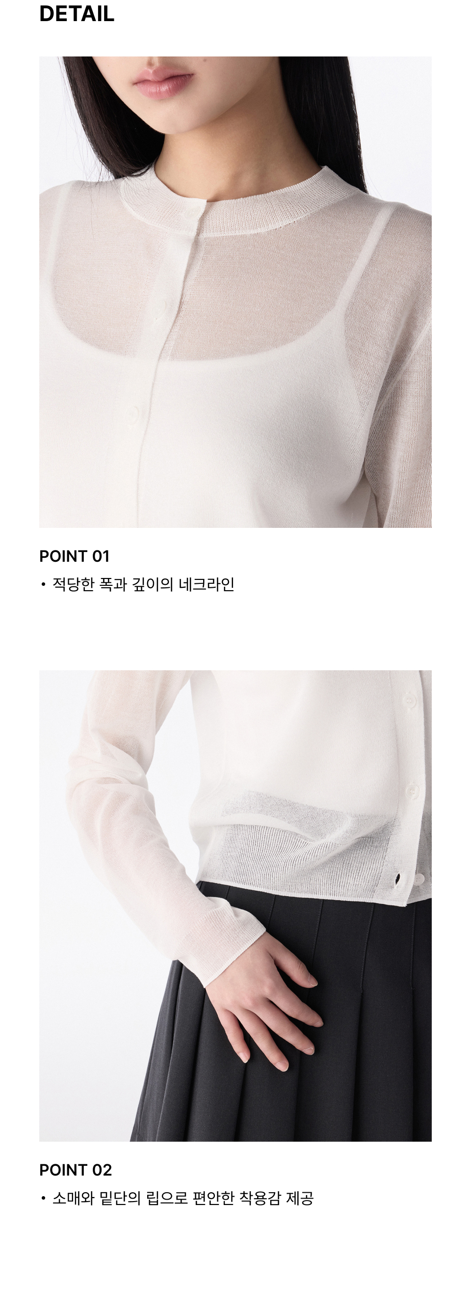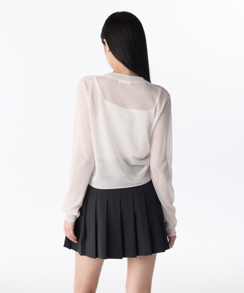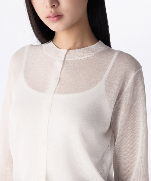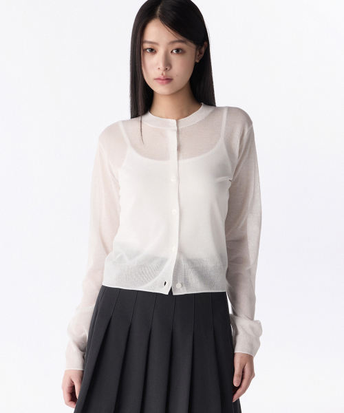 우먼즈 시어 라운드 넥 가디건 [화이트]