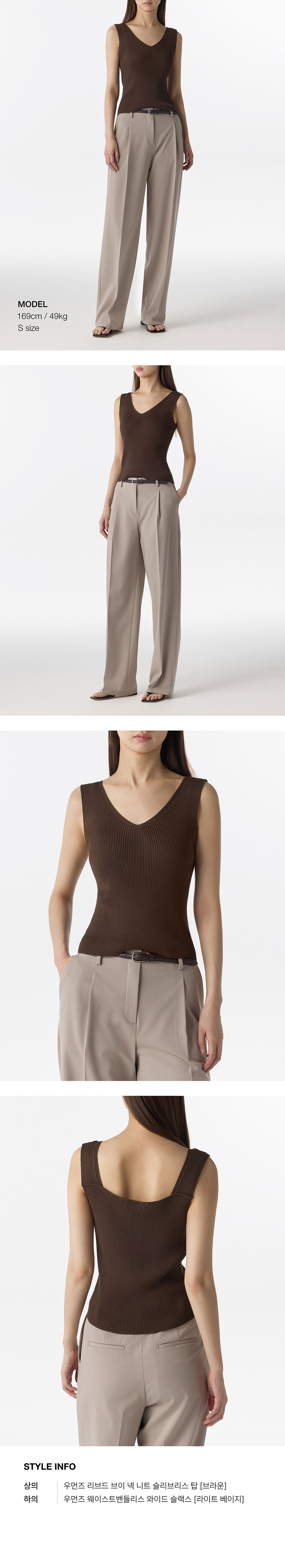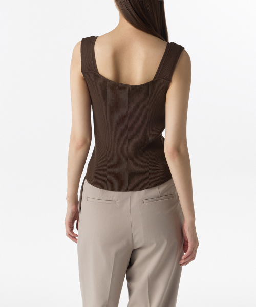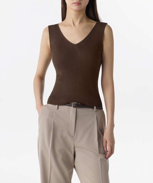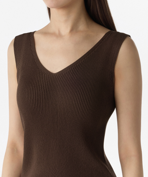 우먼즈 리브드 브이 넥 니트 슬리브리스 탑 [브라운]