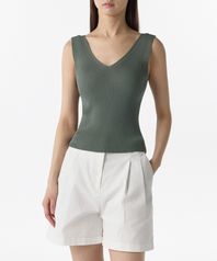 우먼즈 리브드 브이 넥 니트 슬리브리스 탑 [세이지]
