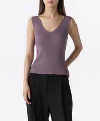 우먼즈 리브드 브이 넥 니트 슬리브리스 탑 [퍼플 그레이]