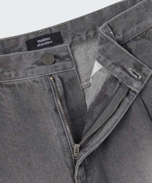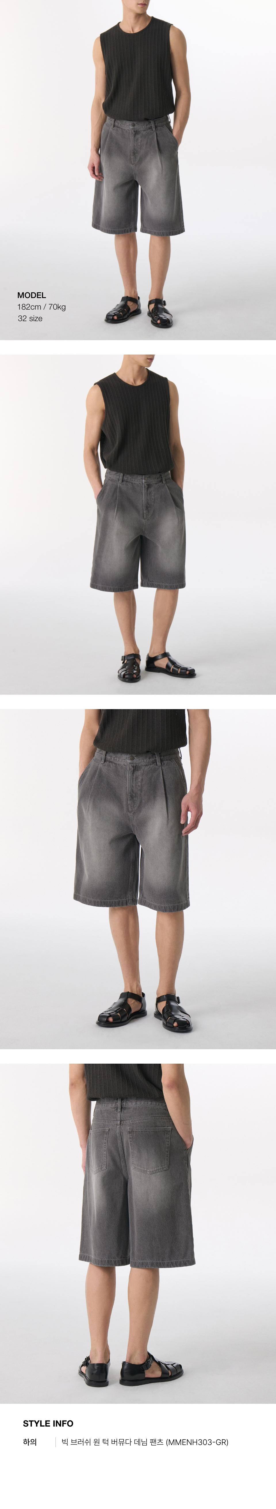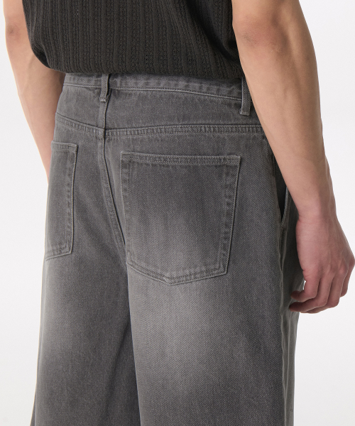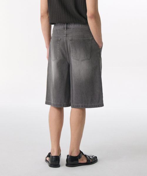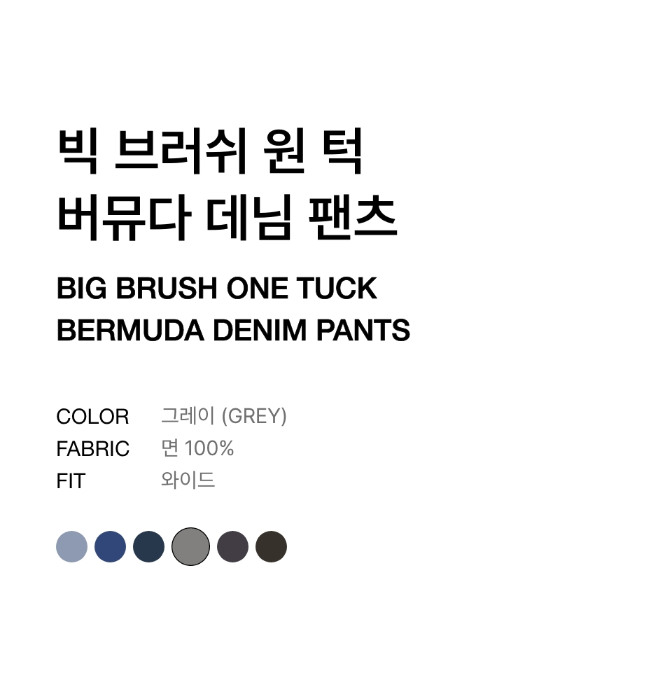 빅 브러쉬 원 턱 버뮤다 데님 팬츠 [그레이]