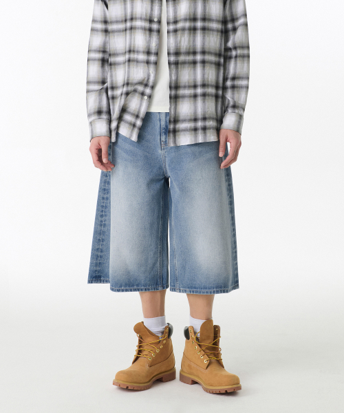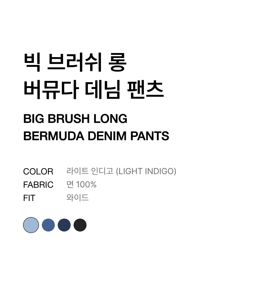 빅 브러쉬 롱 버뮤다 데님 팬츠 [라이트 인디고]