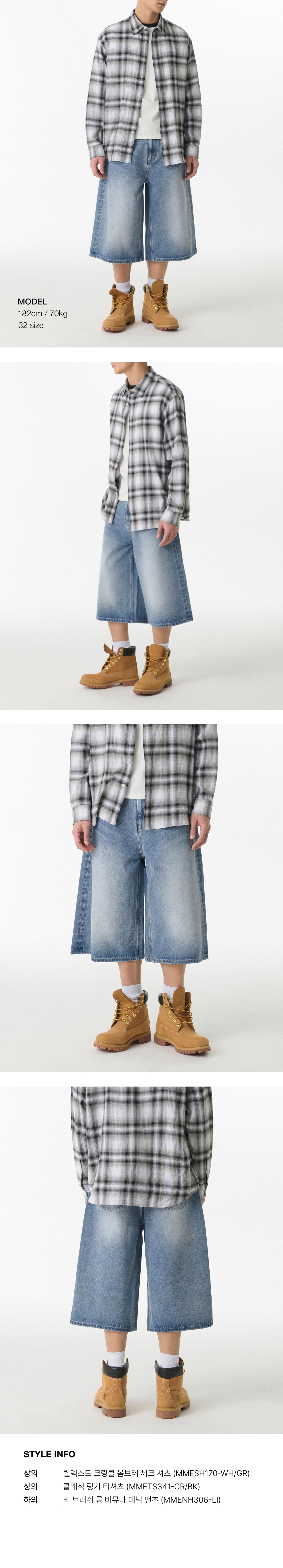 릴렉스드 크링클 옴브레 체크 셔츠 [화이트/그레이]