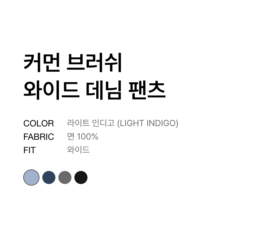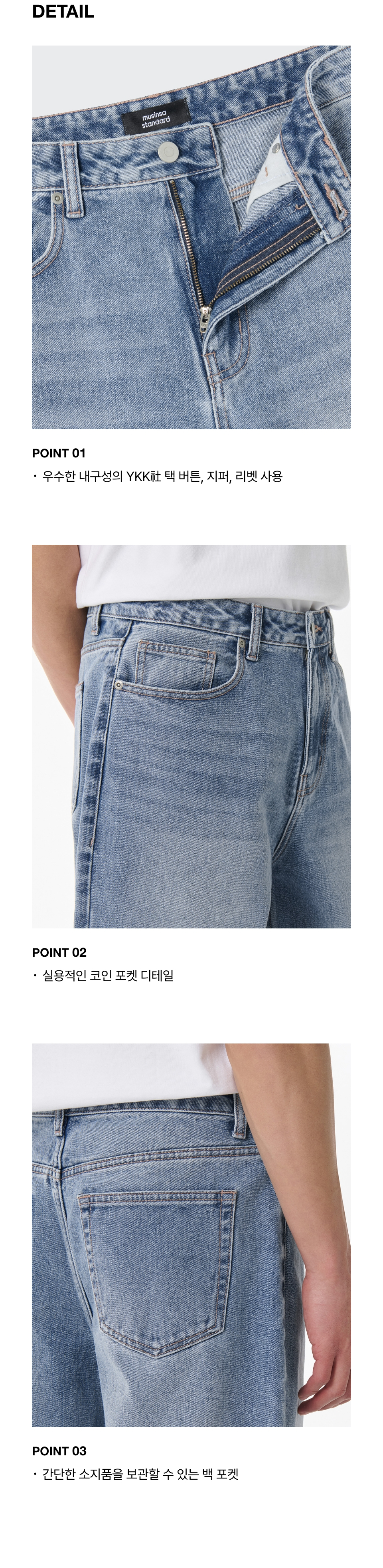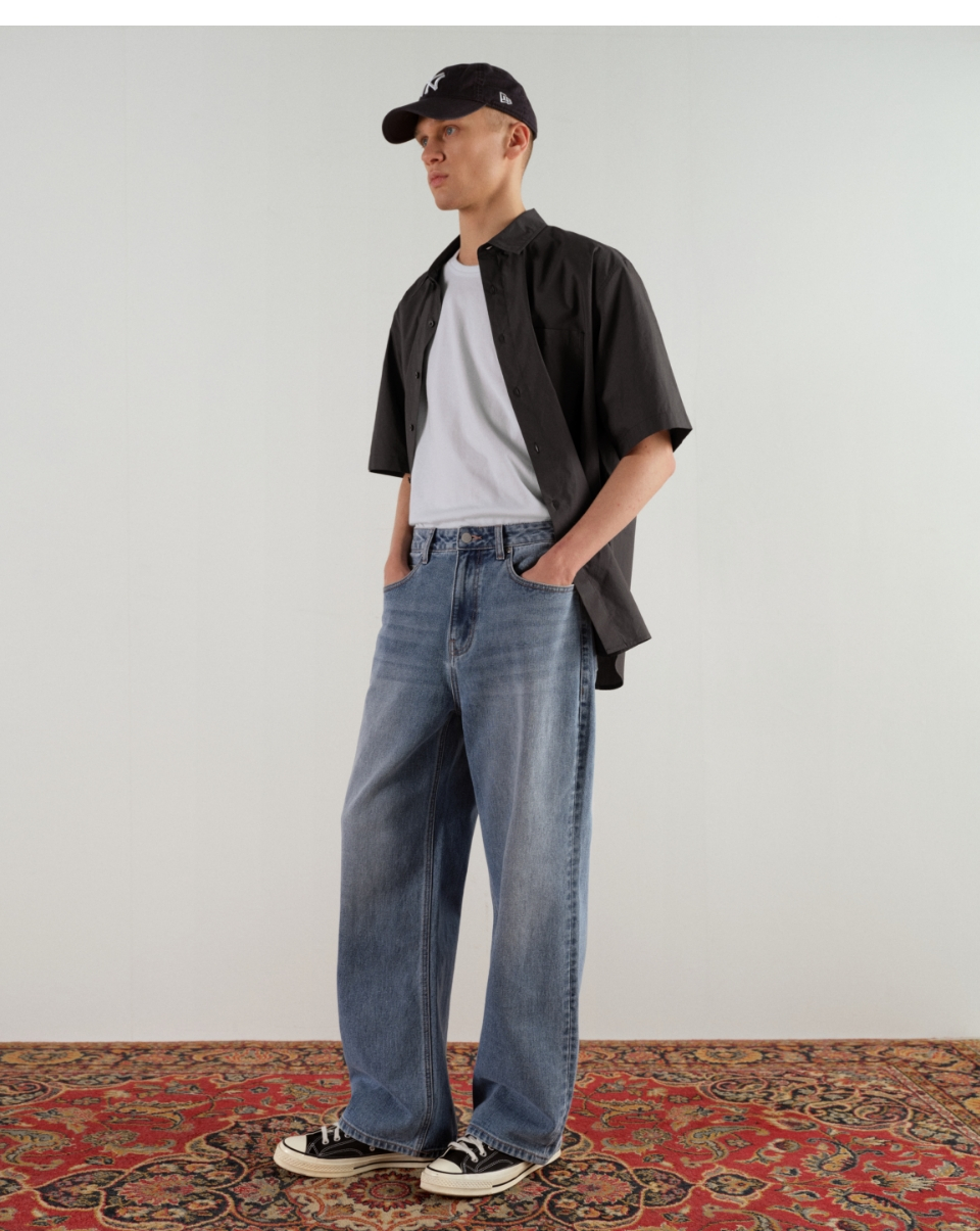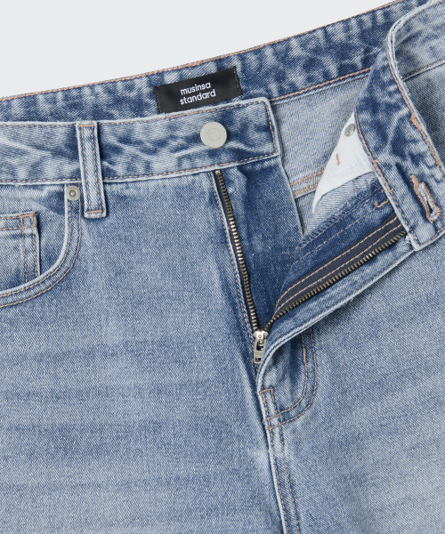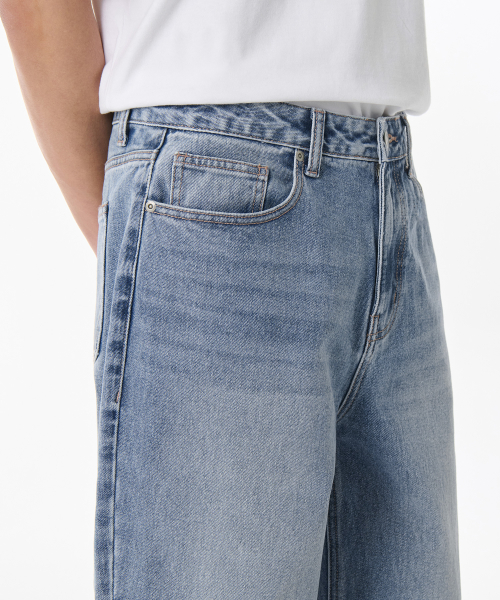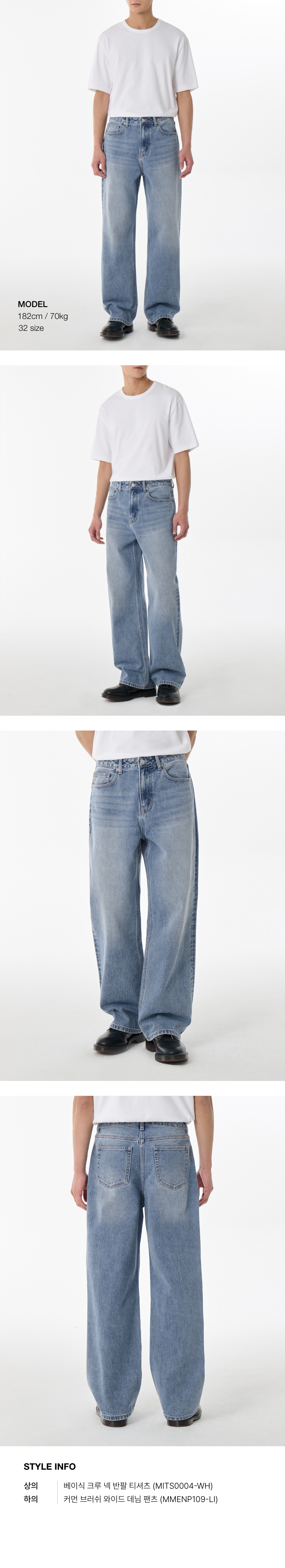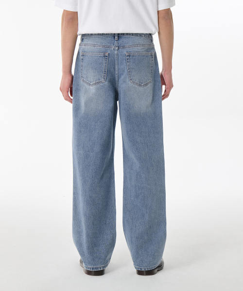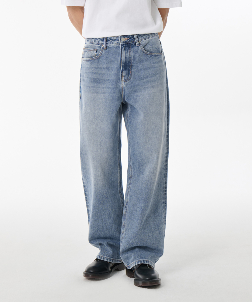 커먼 브러쉬 와이드 데님 팬츠 [라이트 인디고]