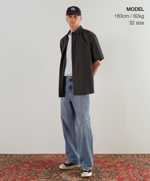 루즈 스트레이트 데님 팬츠 [다크 블루]