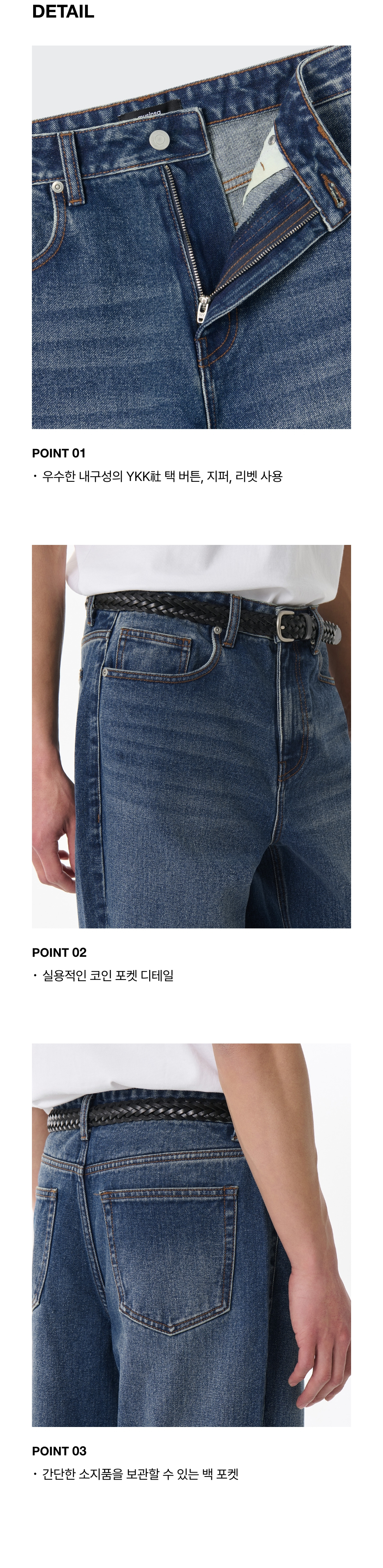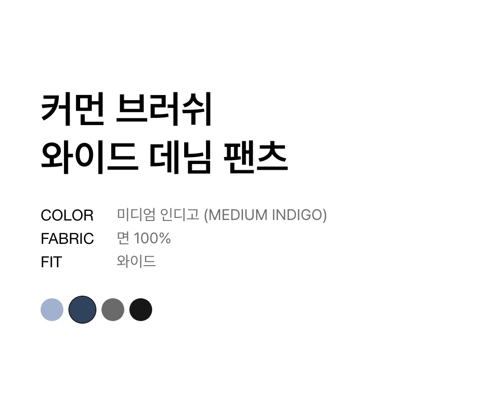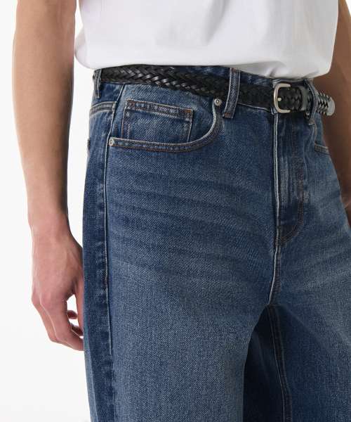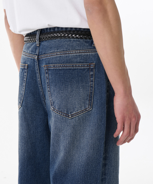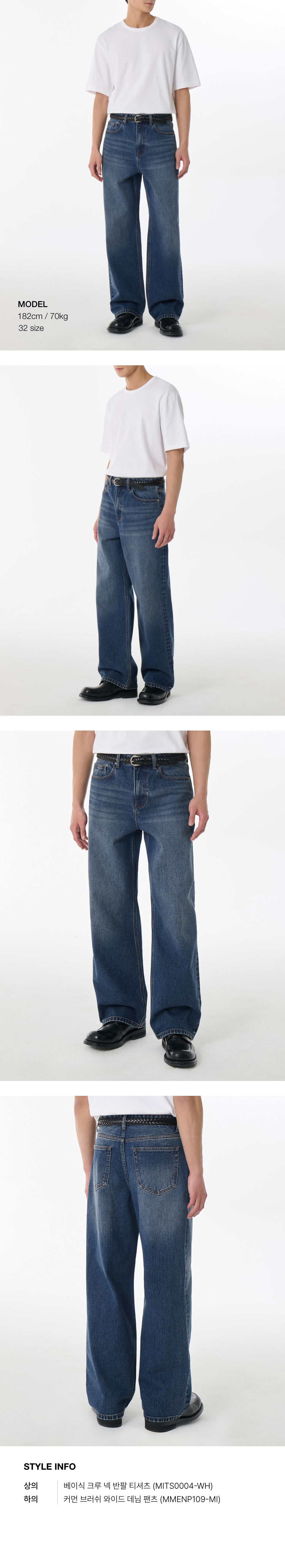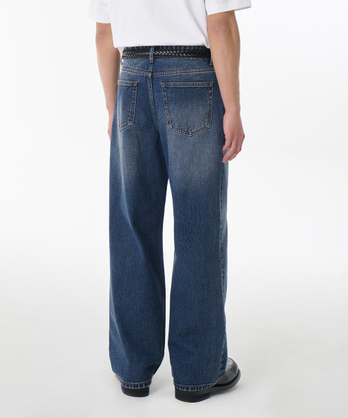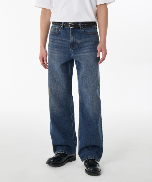 커먼 브러쉬 와이드 데님 팬츠 [미디엄 인디고]