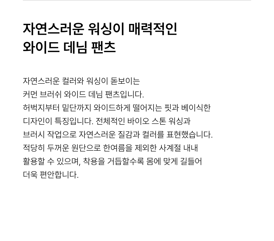커먼 브러쉬 와이드 데님 팬츠 [워시드 블랙]