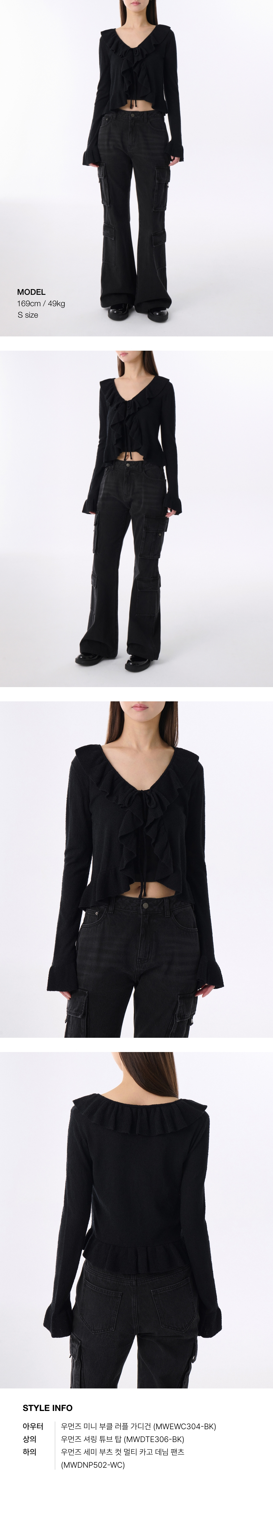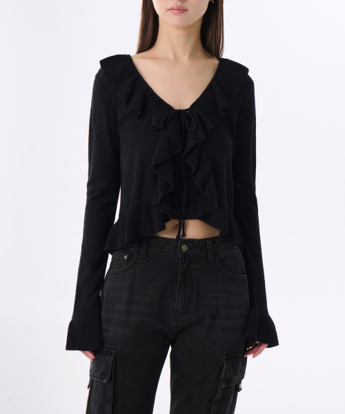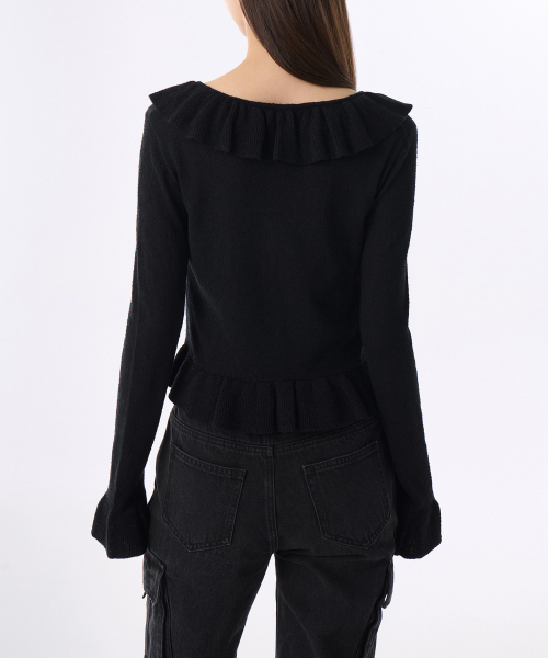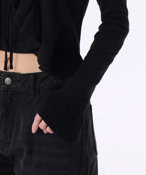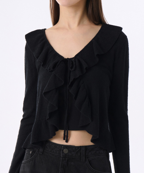 우먼즈 미니 부클 러플 가디건 [블랙]