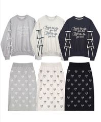 리본 디테일 스웨트셔츠 스커트 투피스 세트