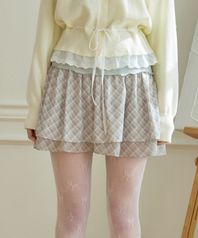 PICNIC CHECK TIERED SKIRT_BEIGE