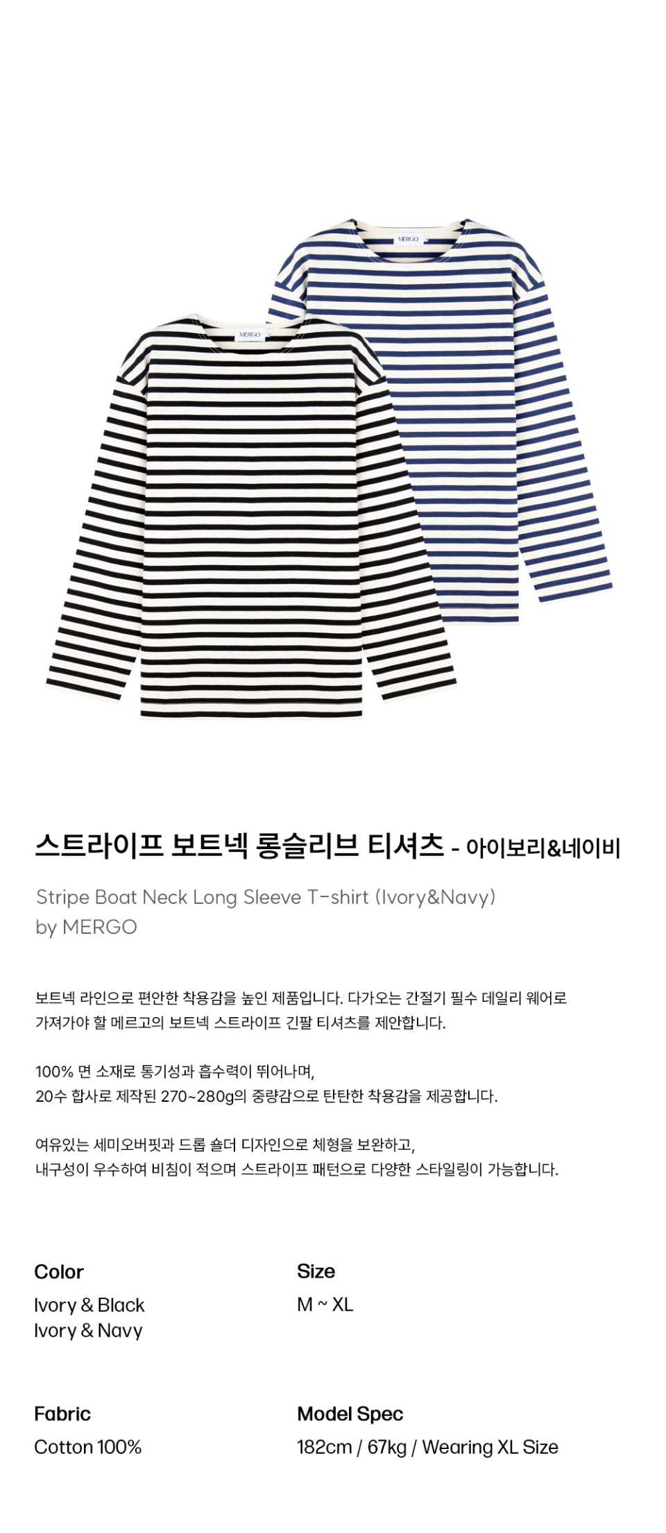 스트라이프 보트넥 롱슬리브 [아이보리&네이비]