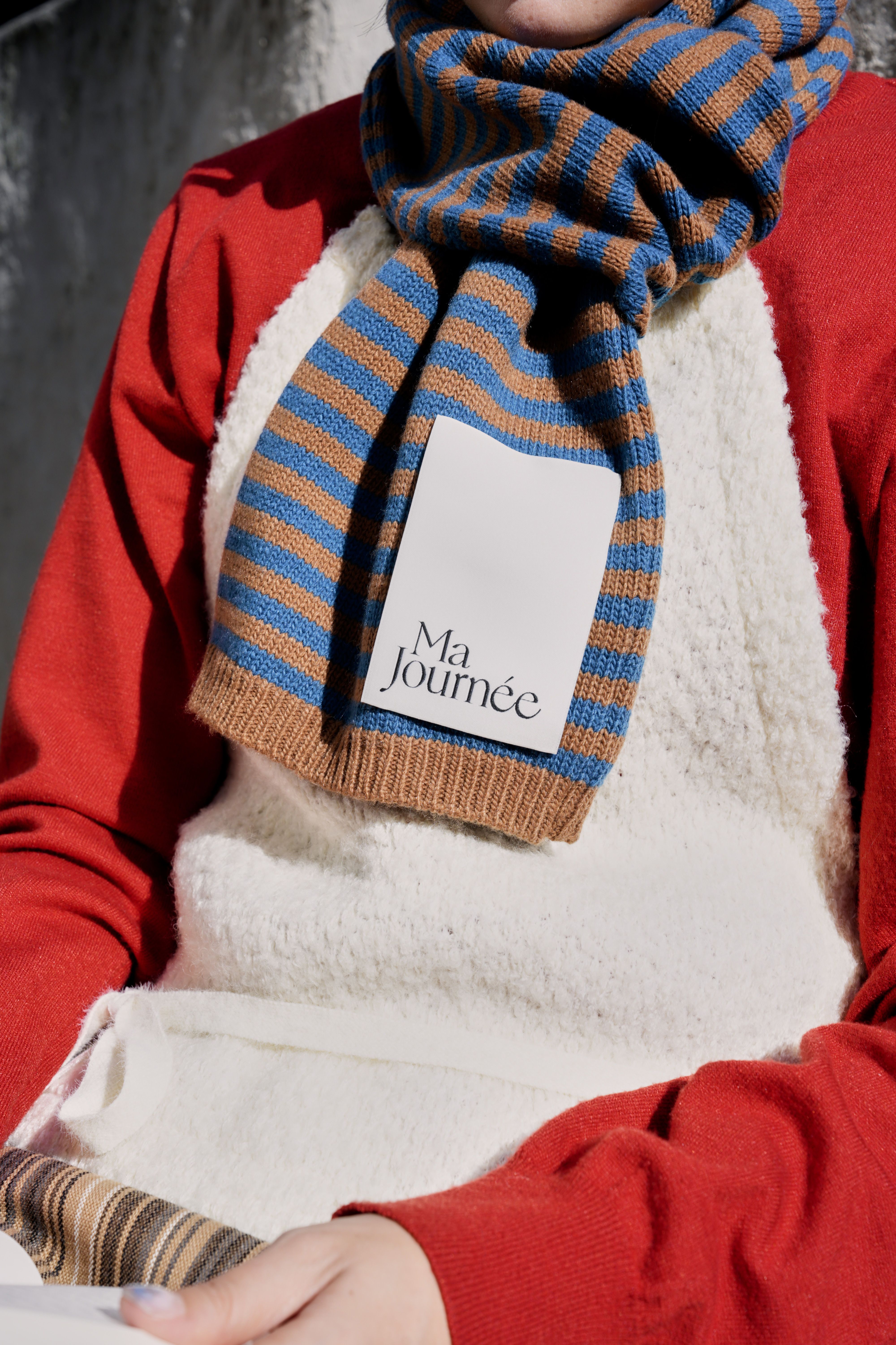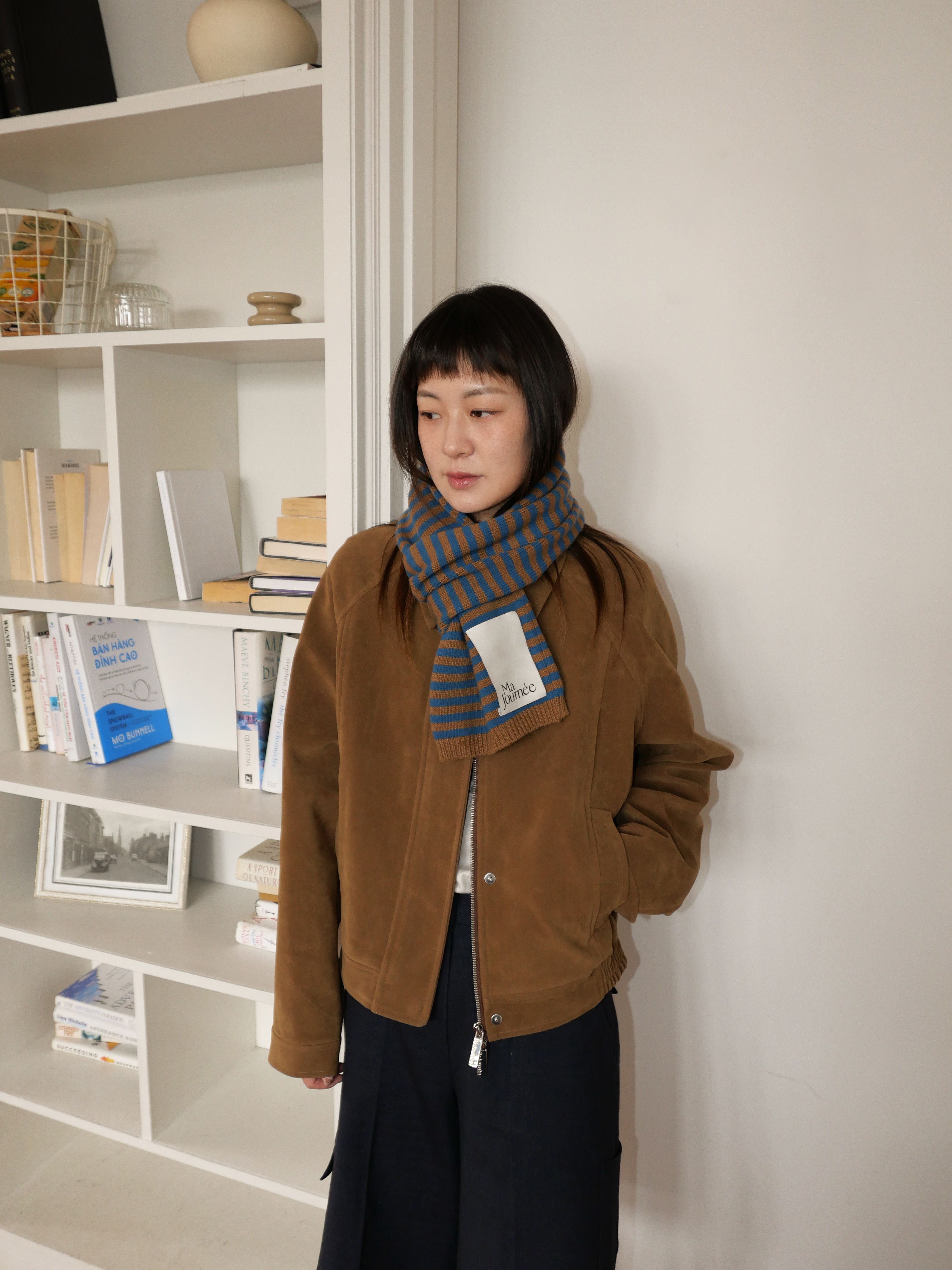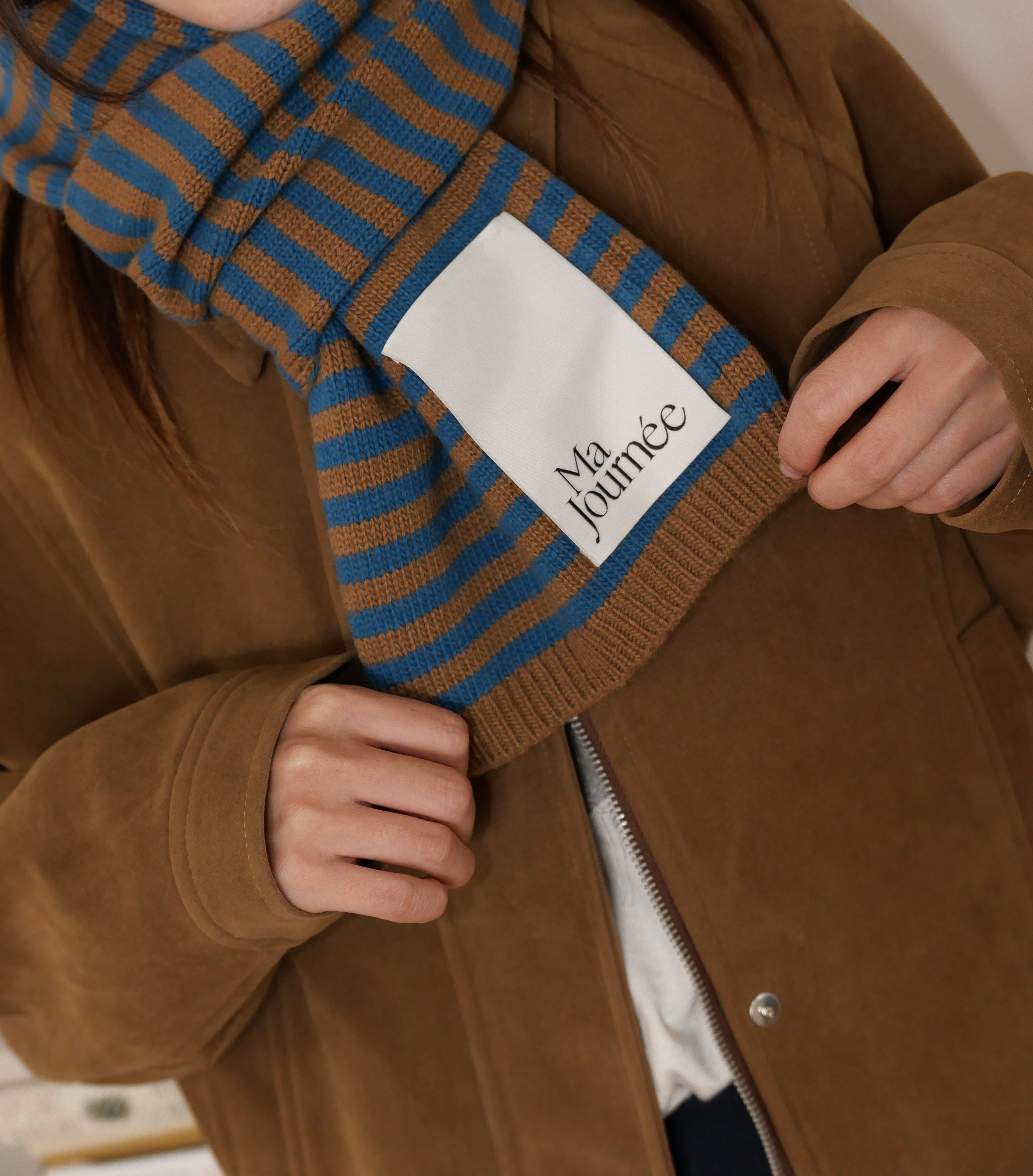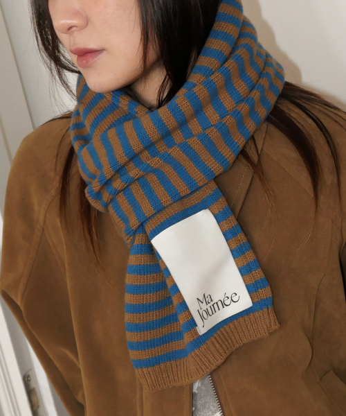 캐시미어 스트라이프 머플러_블루/브라운