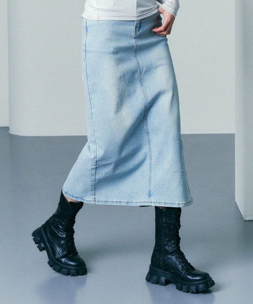 [우먼] 포멀 슬릿 H라인 맥시 스커트 차콜 COWSK002CHARCOAL