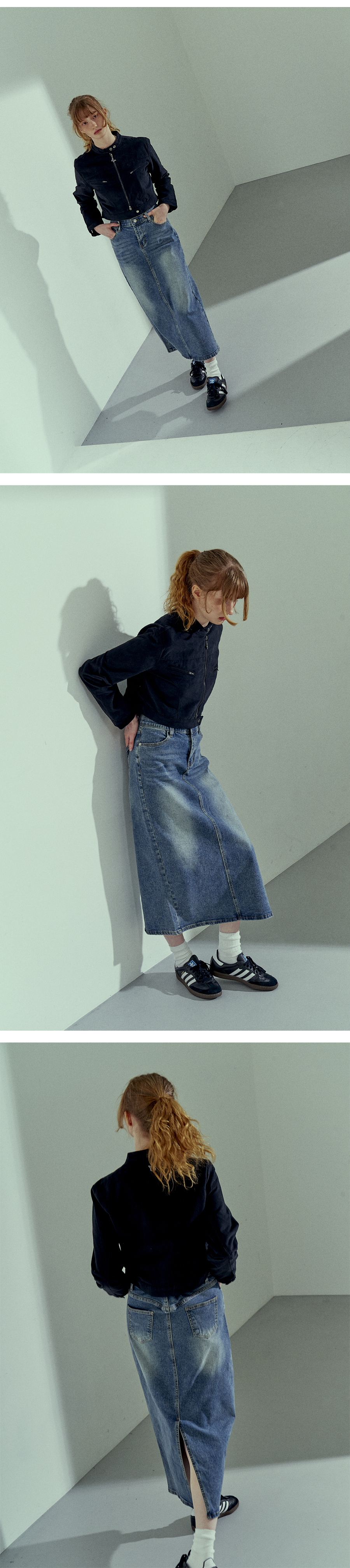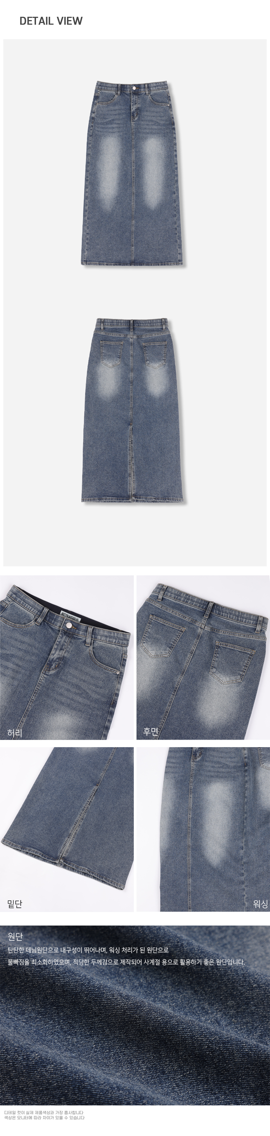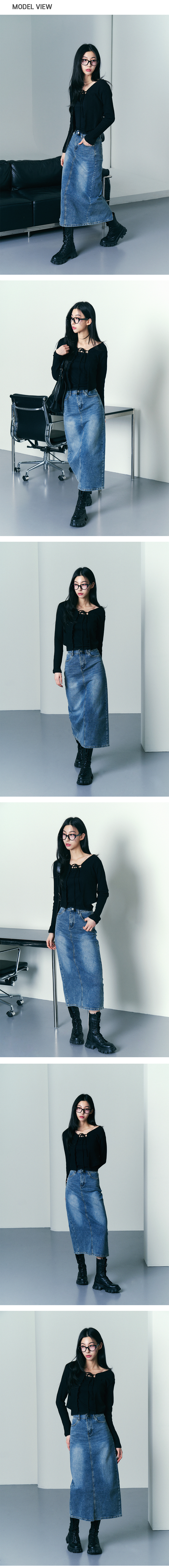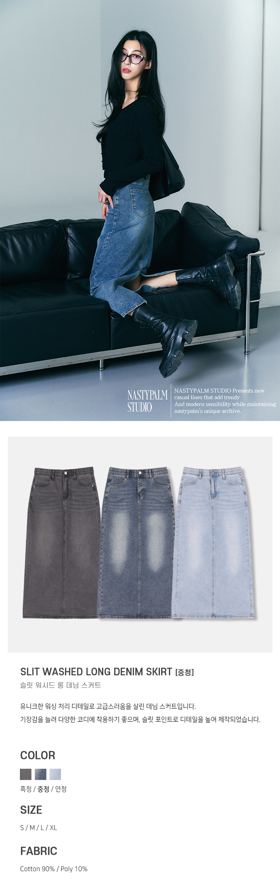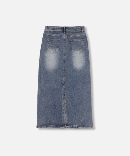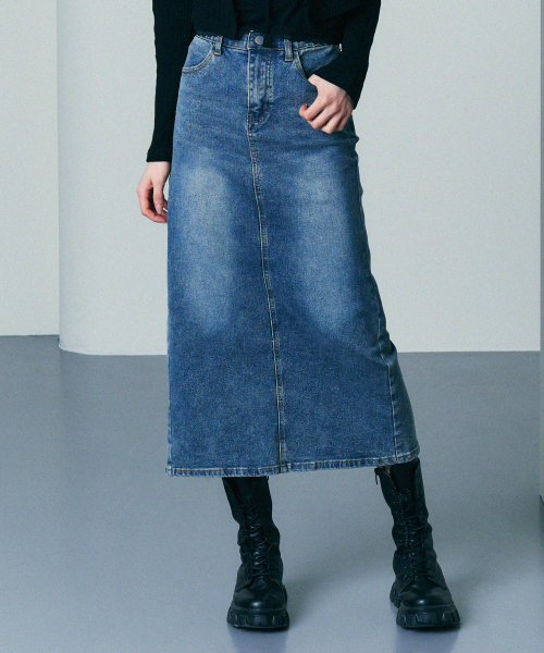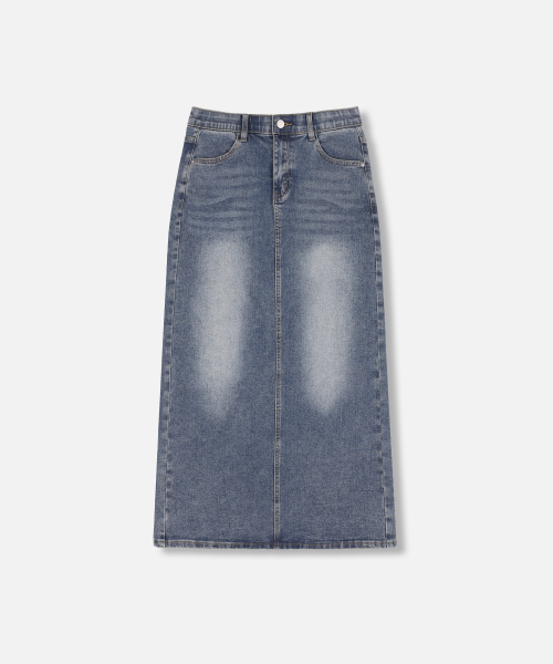 슬릿 워시드 롱 데님 스커트 중청