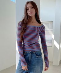 스트라이프 스쿱넥 티셔츠_블루