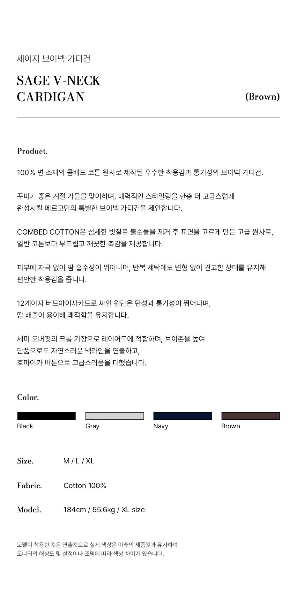 세이지 브이넥 가디건 [브라운]