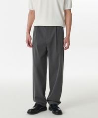 원 턱 루즈 테이퍼드 히든 밴딩 슬랙스 [미디엄 그레이]