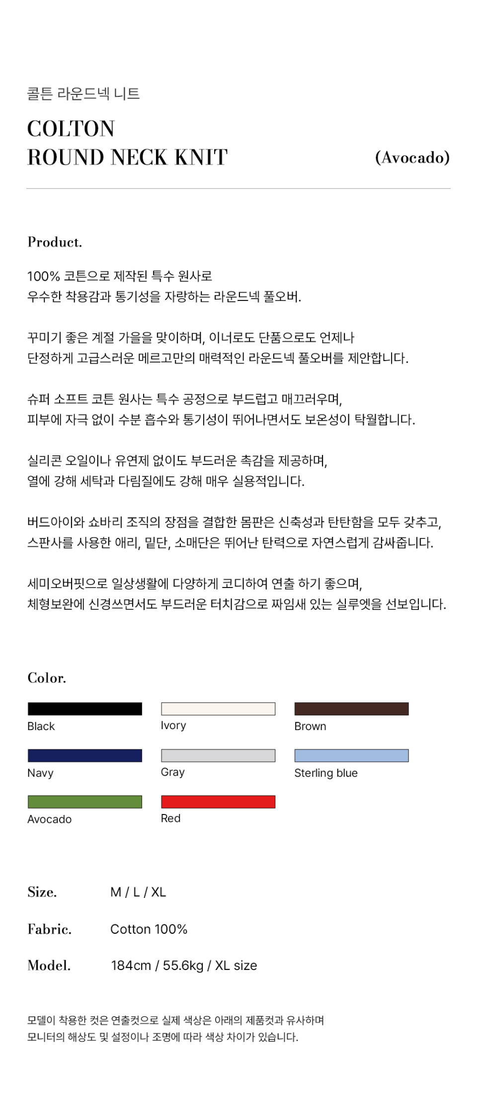 콜튼 라운드넥 니트 [아보카도]