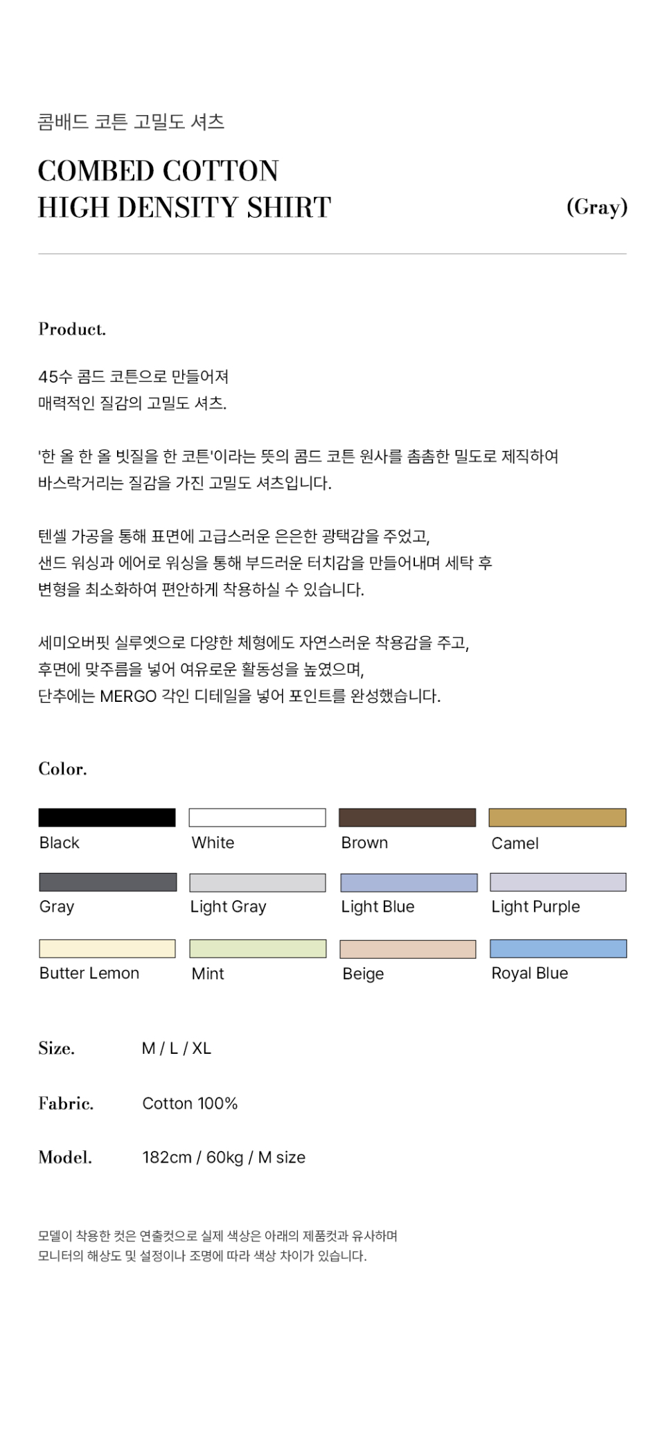 콤배드 코튼 고밀도 셔츠 [라이트그레이]