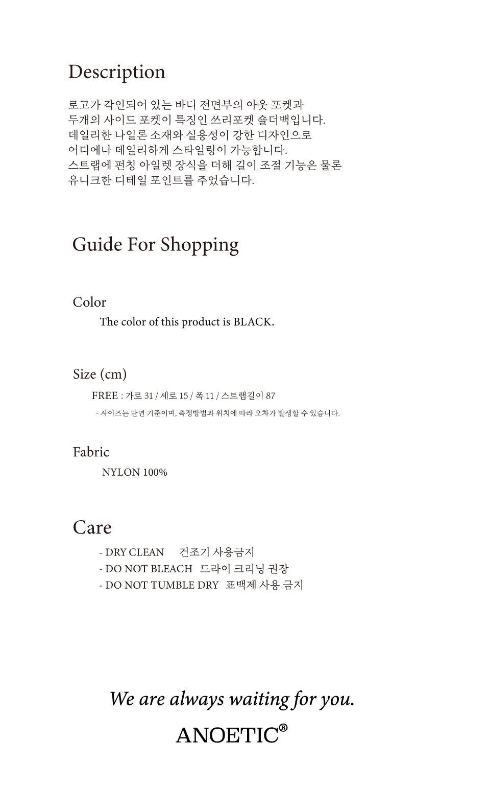 아노에틱(ANOETIC)은 컨템포러리하고 절제된 디자인을 추구하면서도 남들과 다른, 기존에 없는 디자인을 추구하는 브랜드입니다.