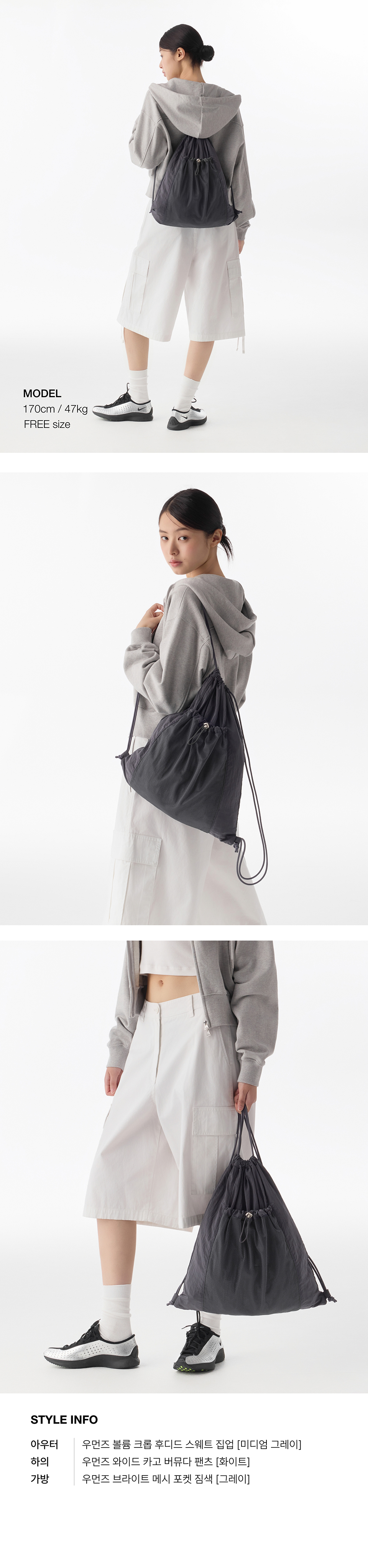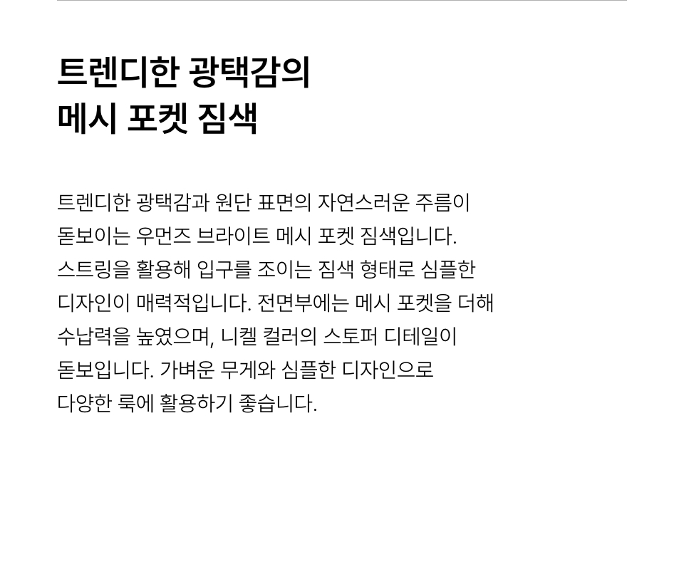 우먼즈 브라이트 메시 포켓 짐색 [그레이]