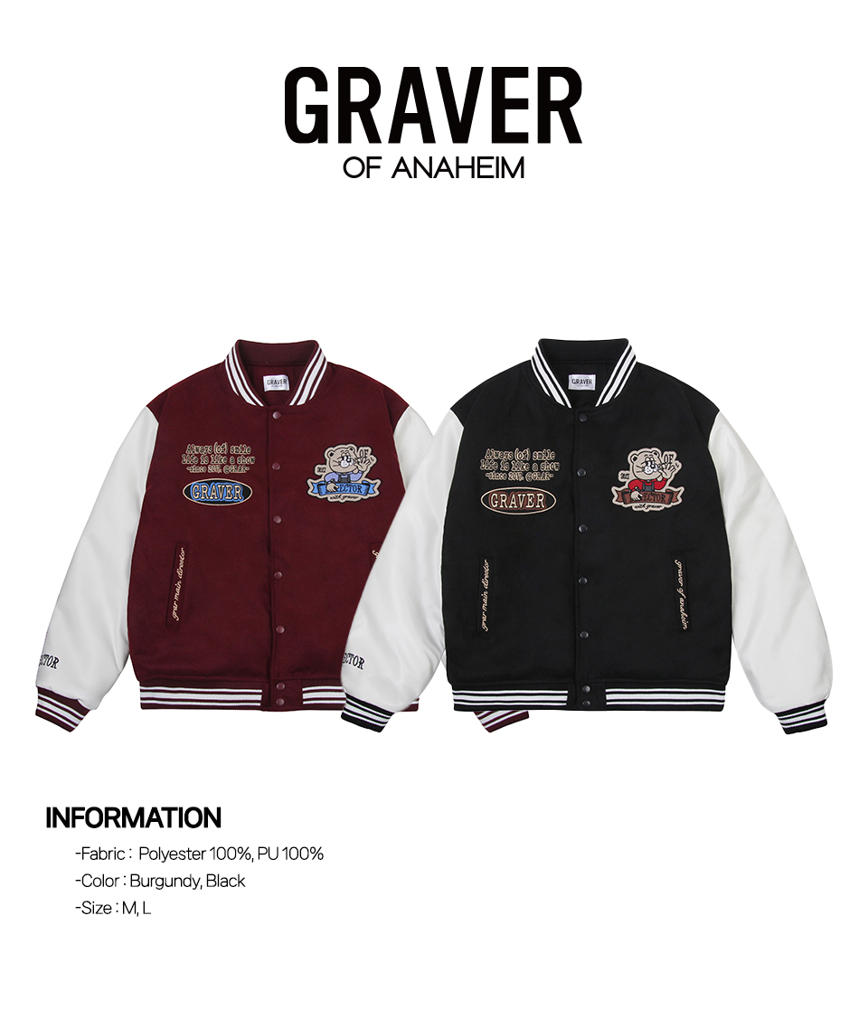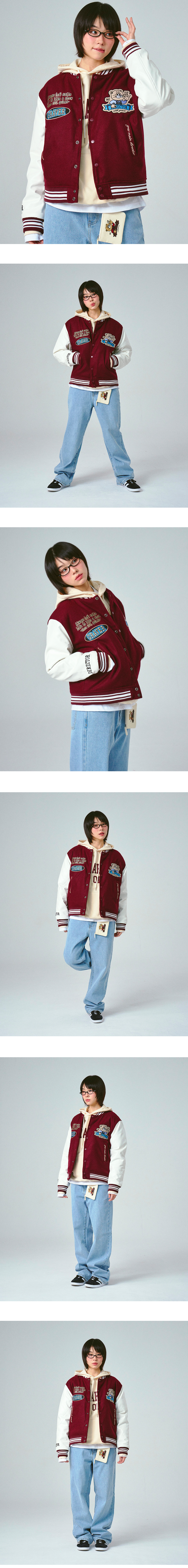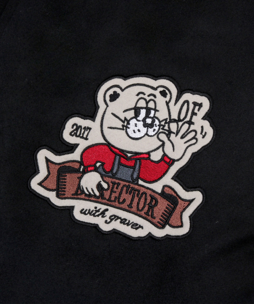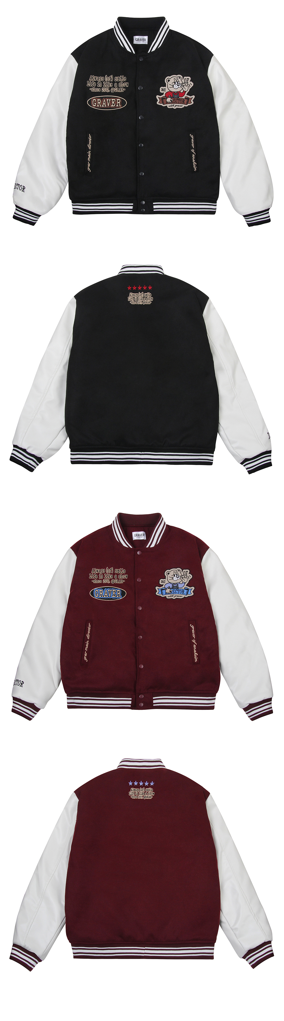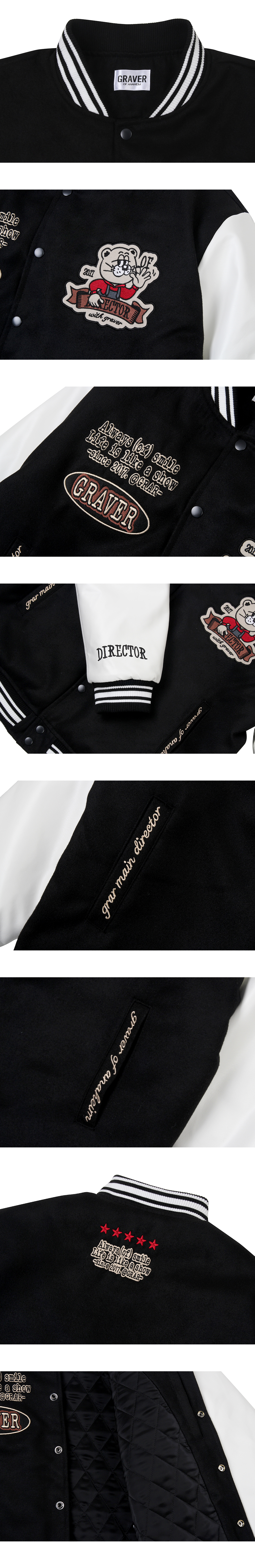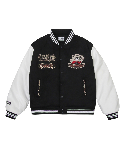 [UNISEX]OF 베어 바시티 자켓_블랙