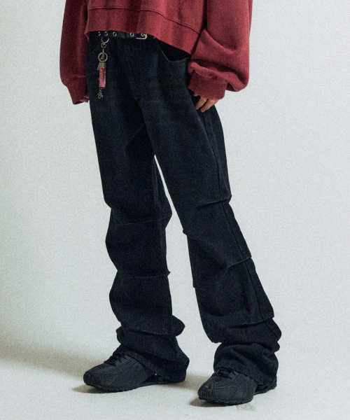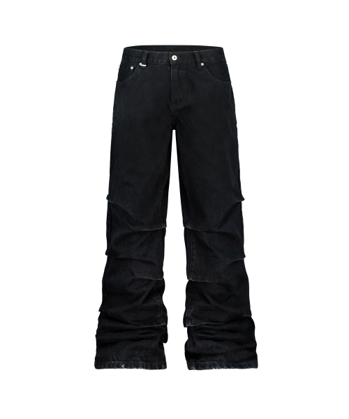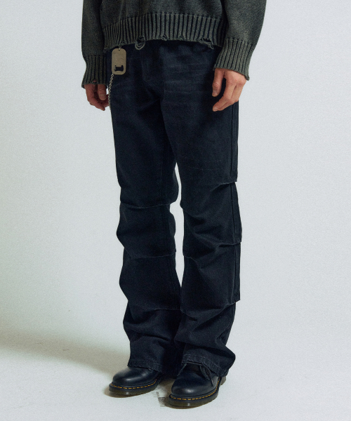 얼터네이트 턱 플레어 데님 팬츠 [블랙]