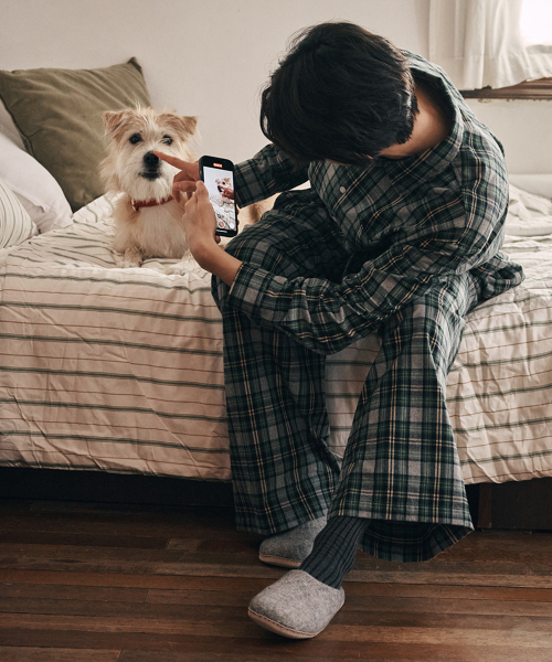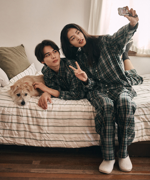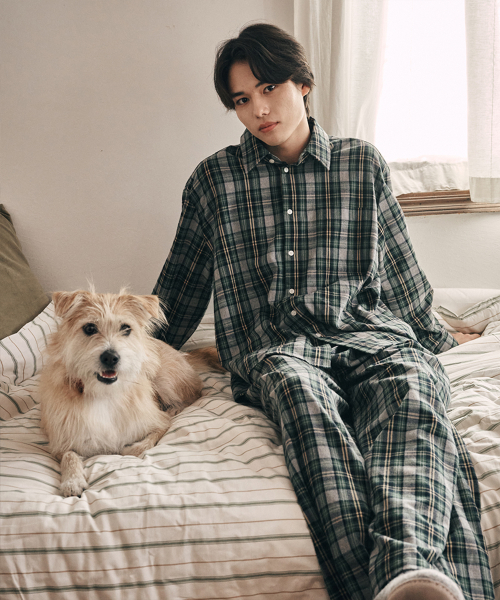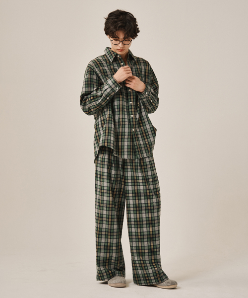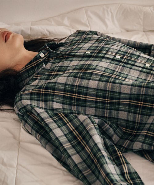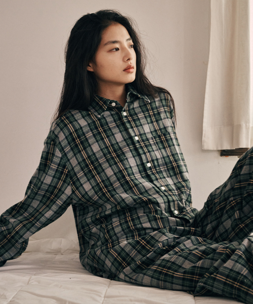 (uni)플란넬 머그워트 체크 파자마 셔츠 그린