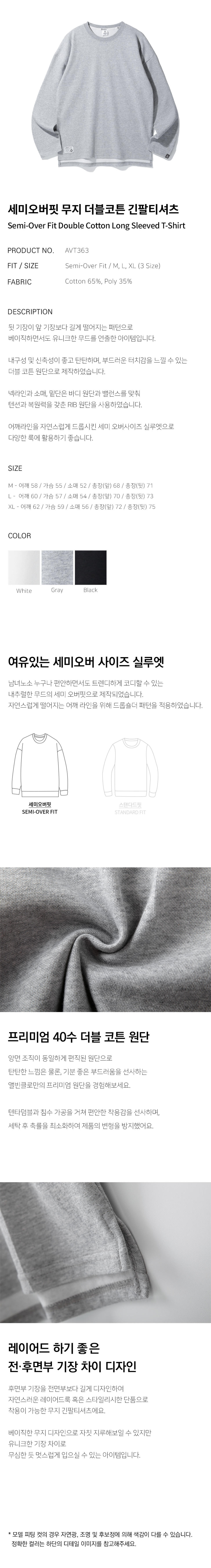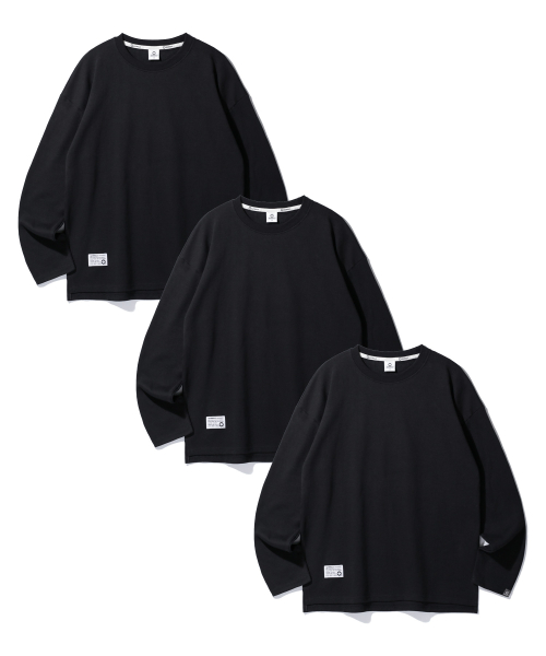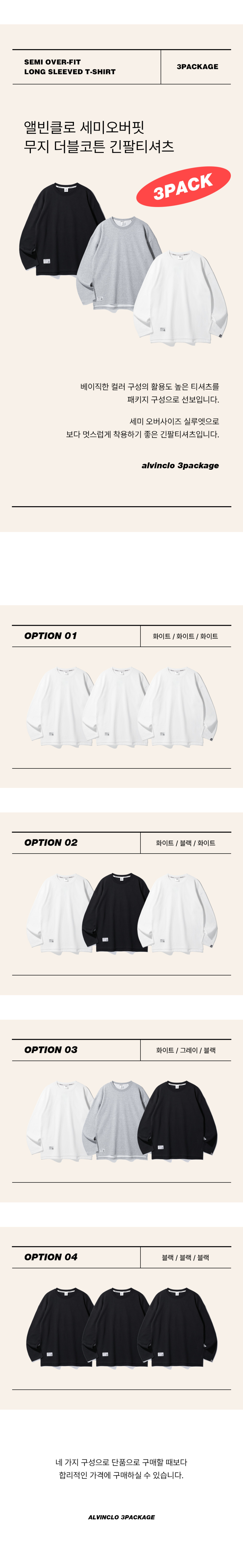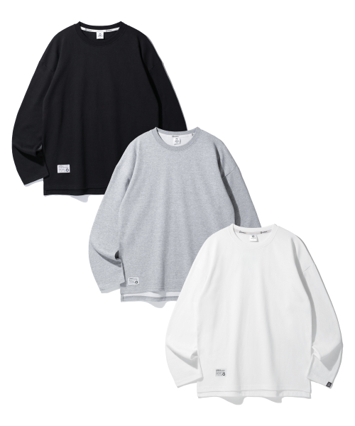 [3PACK] 세미오버핏 무지 더블코튼 긴팔티셔츠 3종 패키지