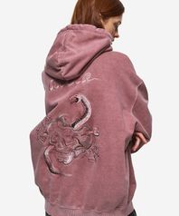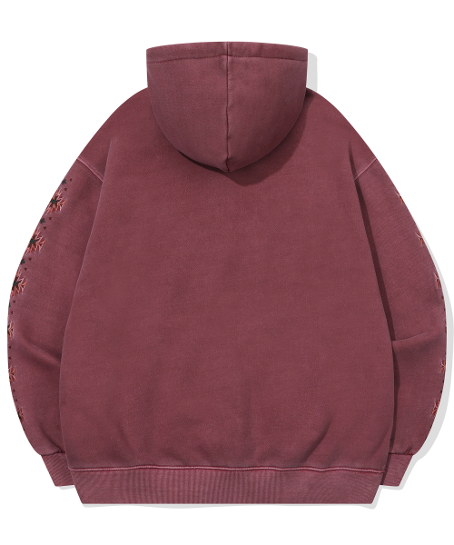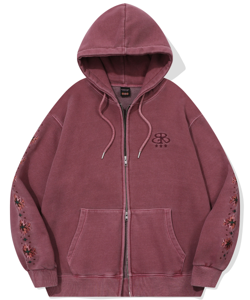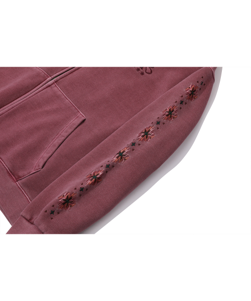자수 아트웍이 피그먼트 워싱되며 가공 처리하여 유니크한 무드를 연출했습니다.