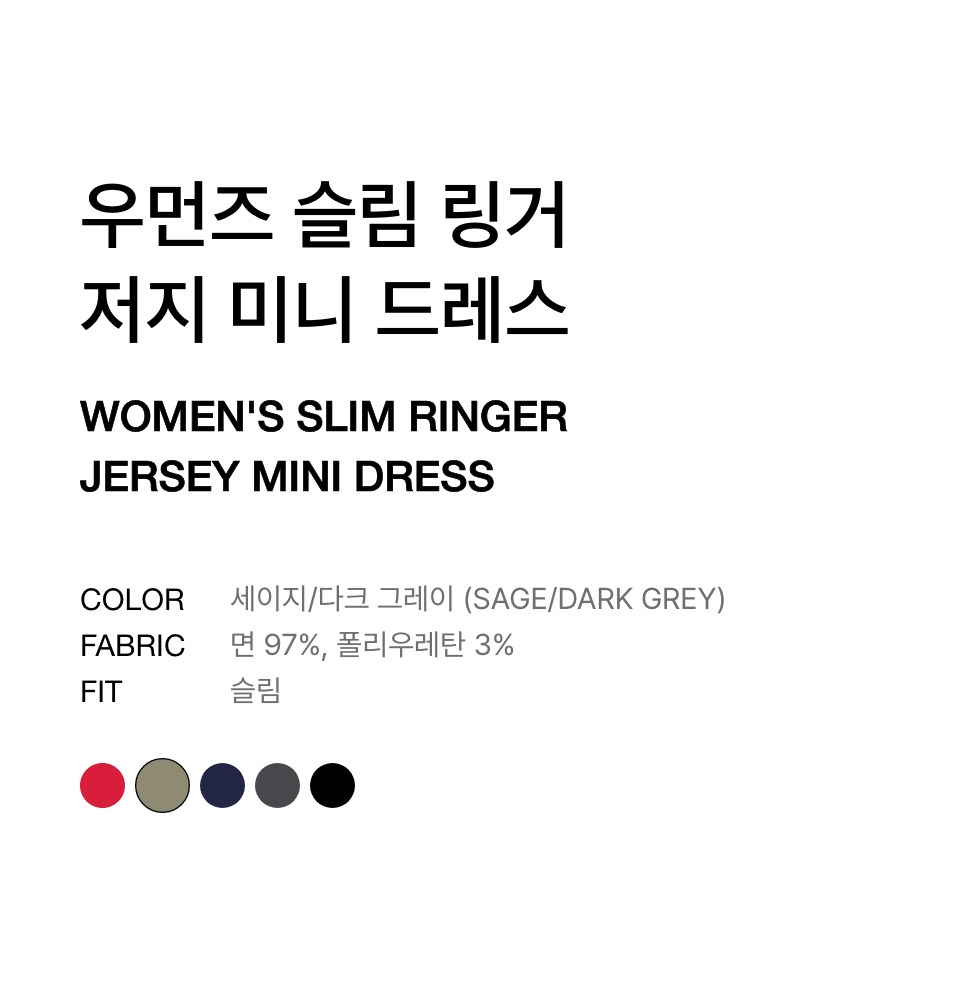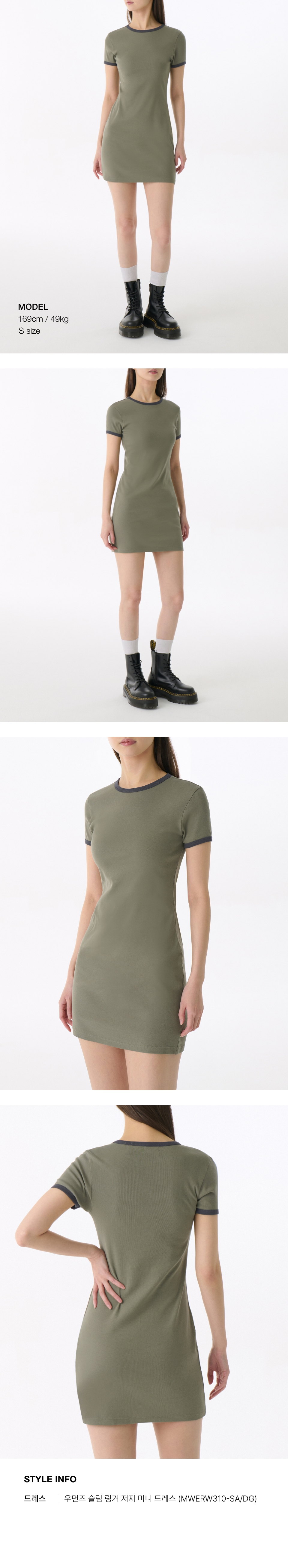 우먼즈 슬림 링거 저지 미니 드레스 [세이지/다크 그레이]