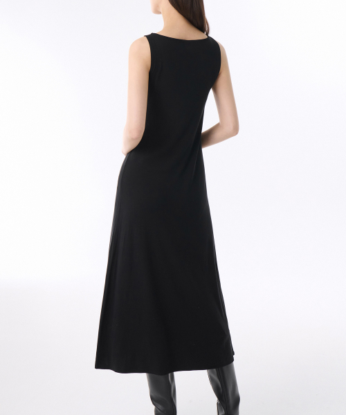 우먼즈 소프트 저지 플레어 롱 드레스 [블랙]