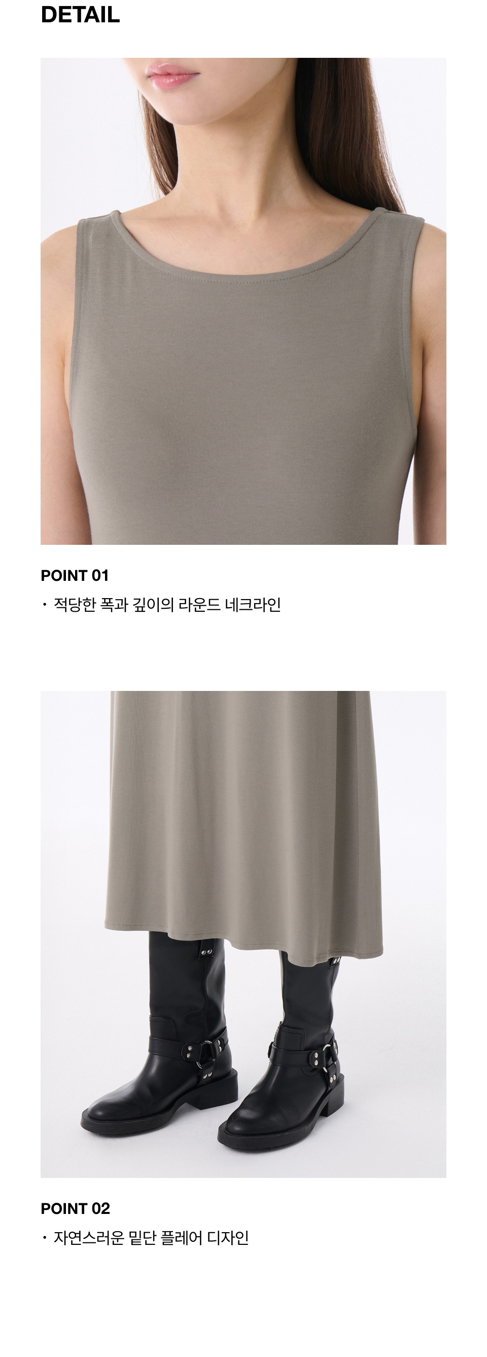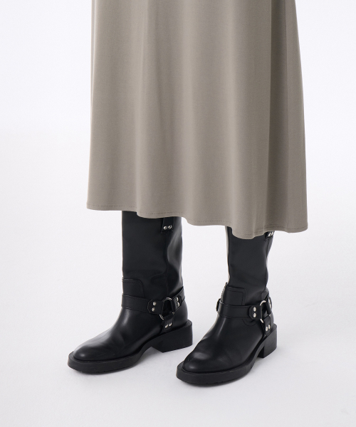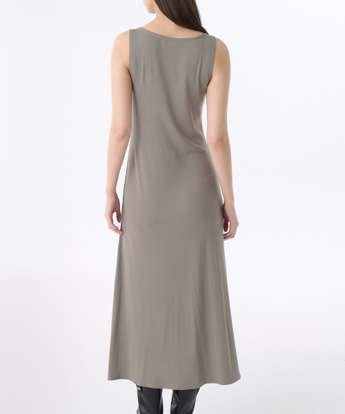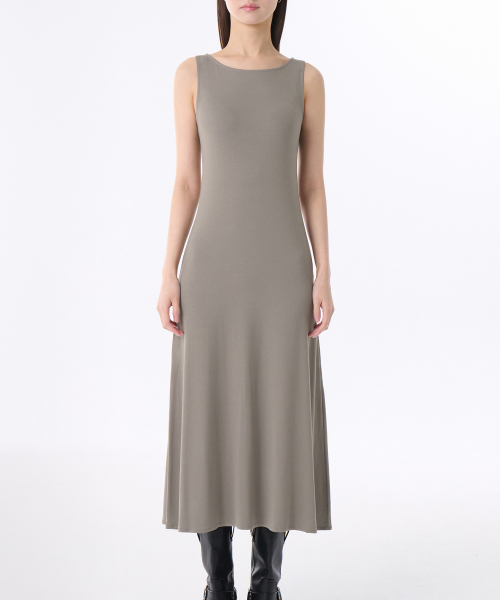 우먼즈 소프트 저지 플레어 롱 드레스 [라이트 웜 그레이]