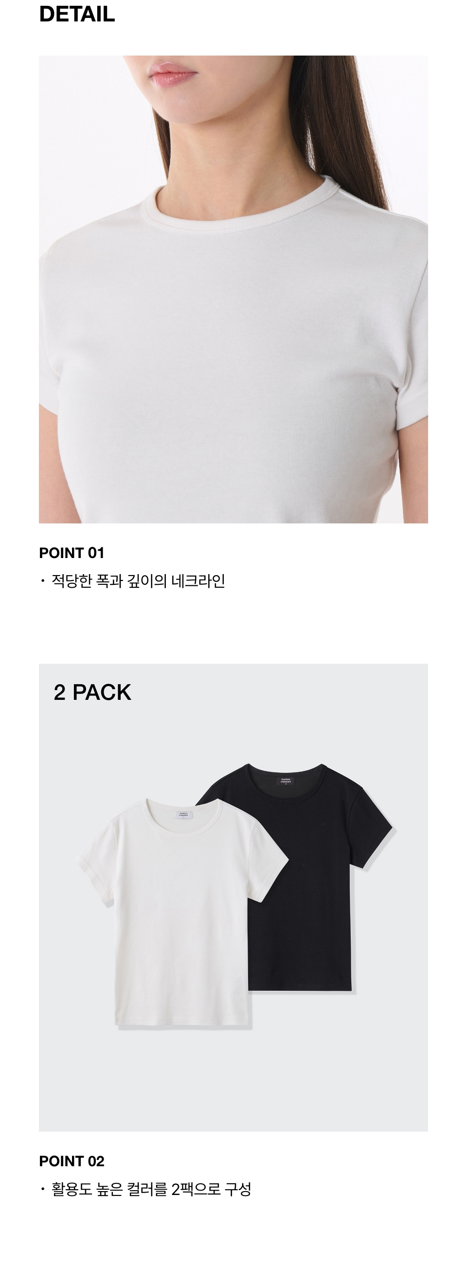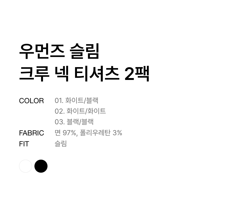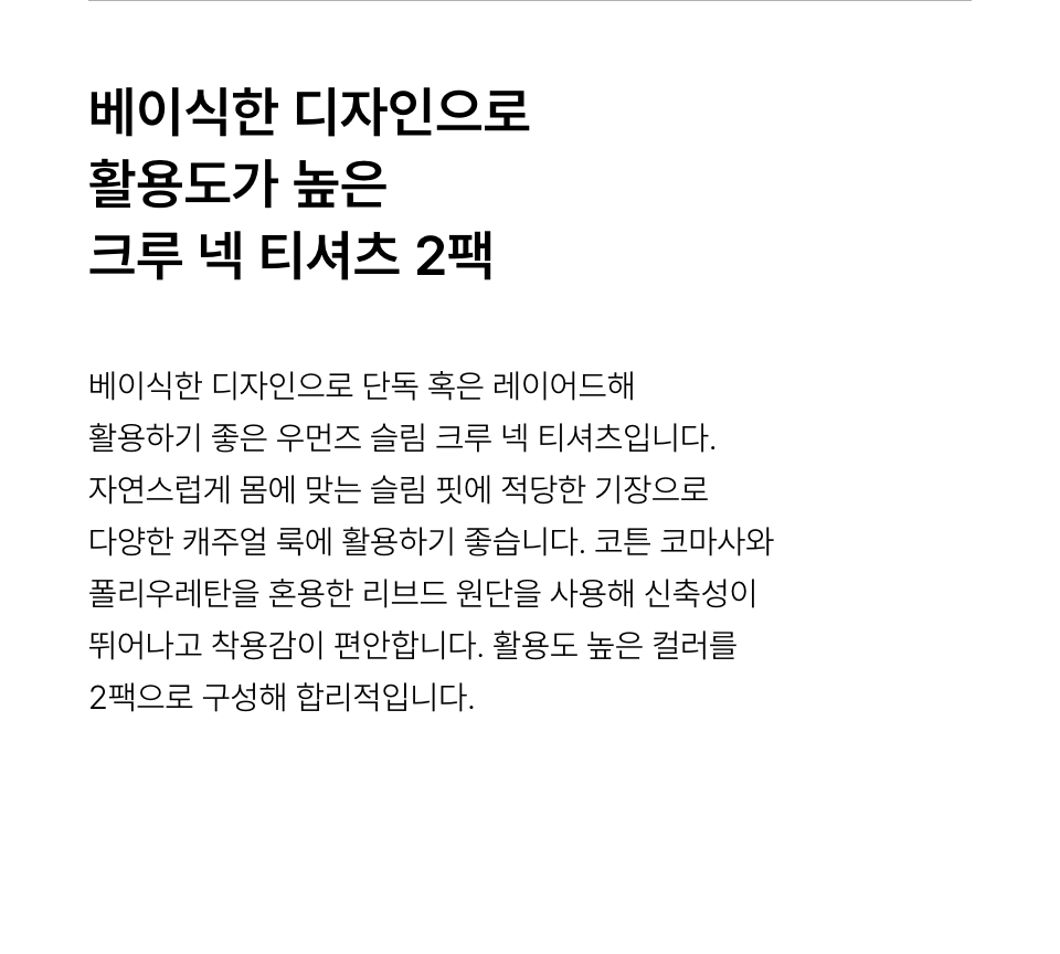 우먼즈 슬림 크루 넥 티셔츠 2팩