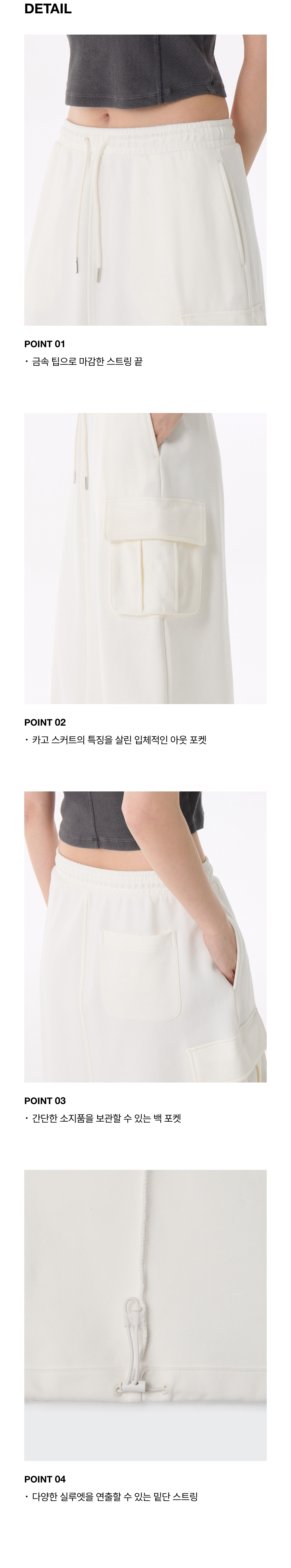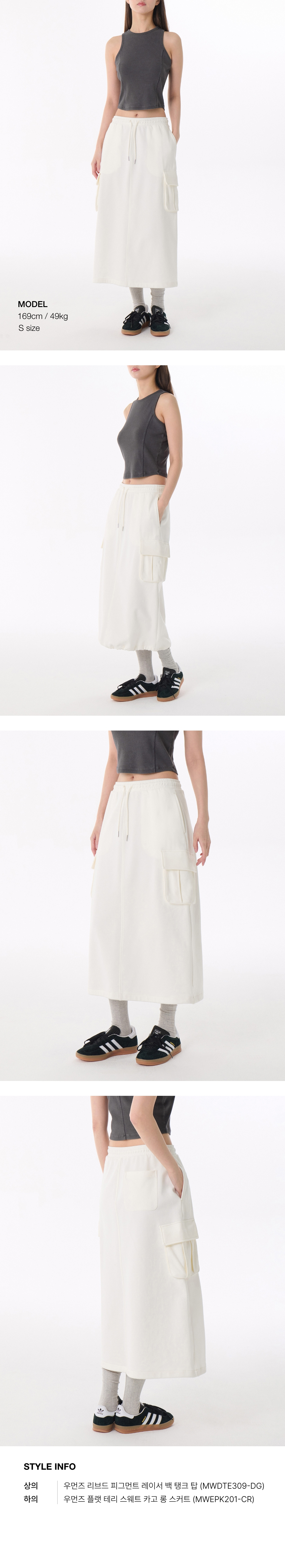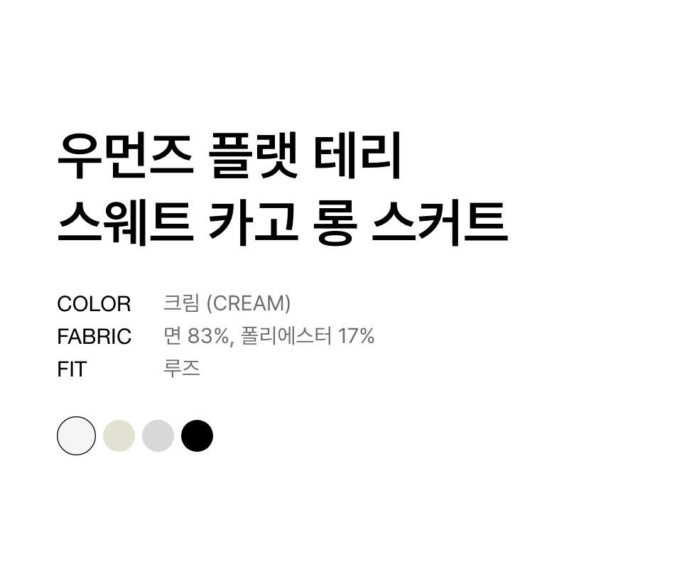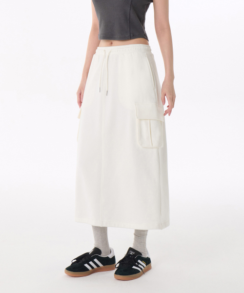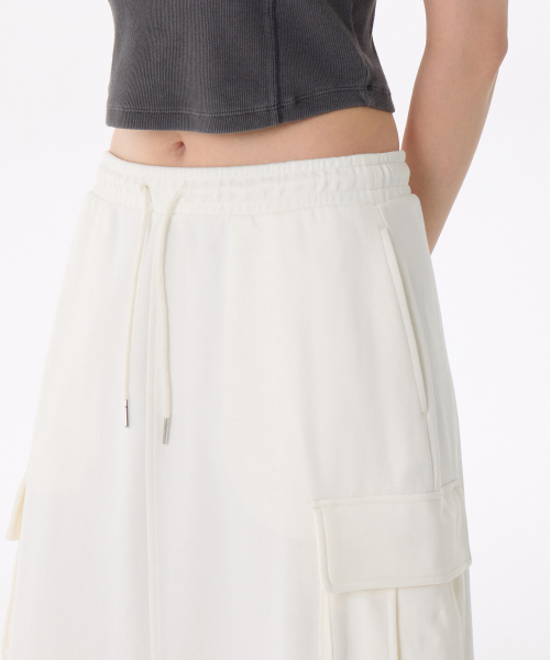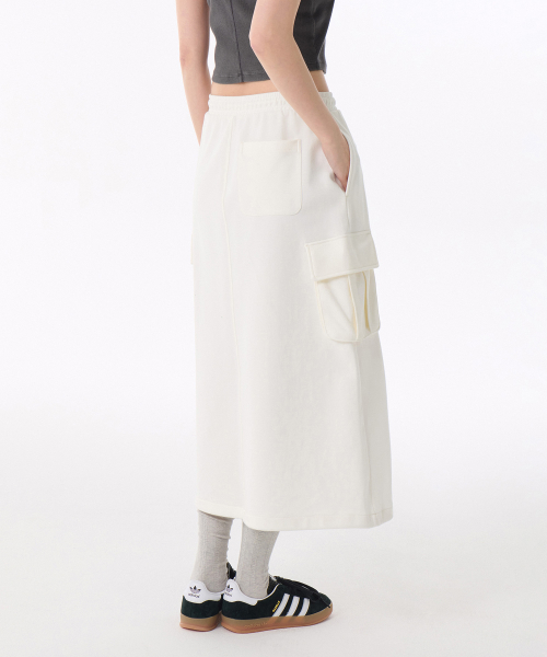 우먼즈 플랫 테리 스웨트 카고 롱 스커트 [크림]