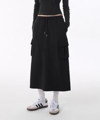 우먼즈 플랫 테리 스웨트 카고 롱 스커트 [블랙]