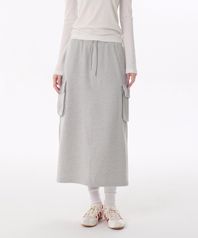 우먼즈 플랫 테리 스웨트 카고 롱 스커트 [미디엄 그레이]