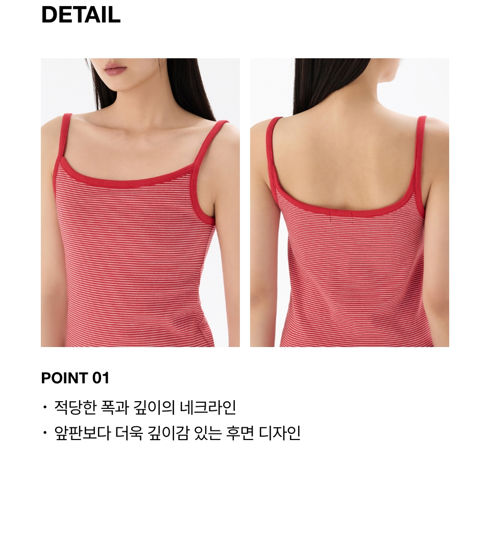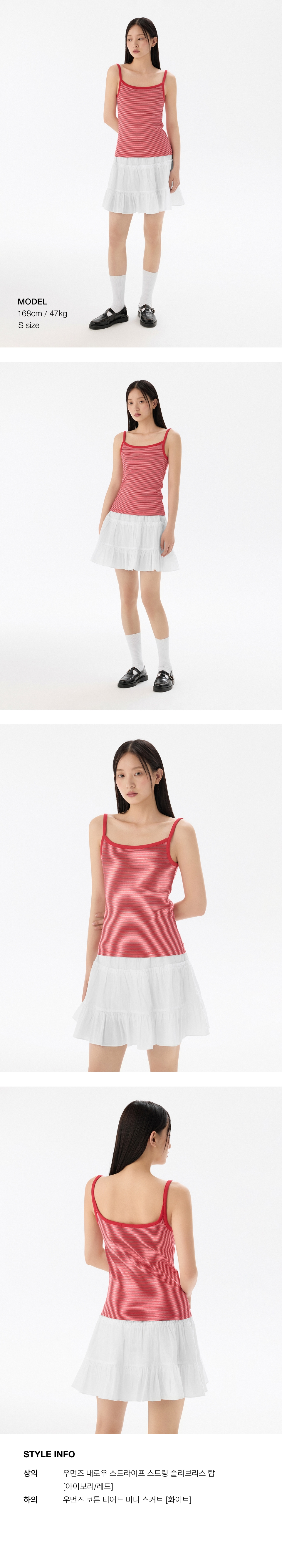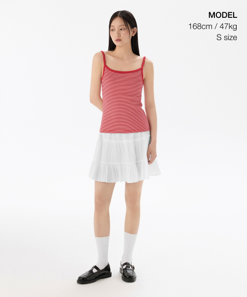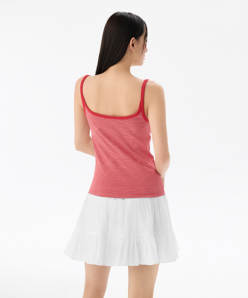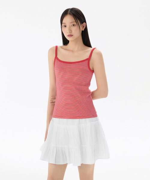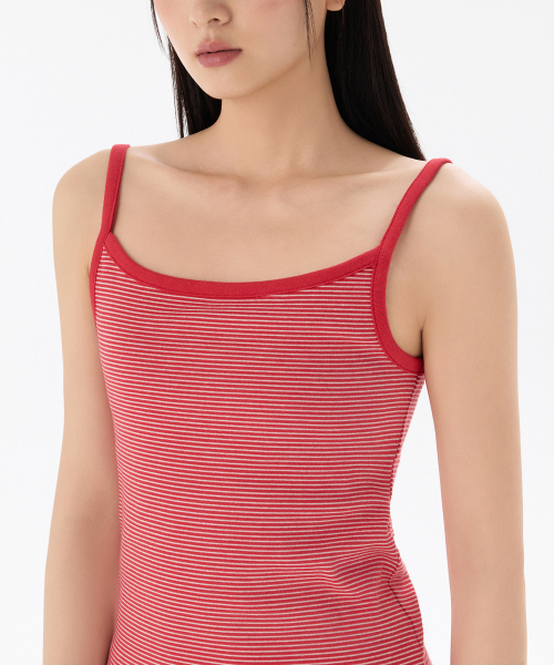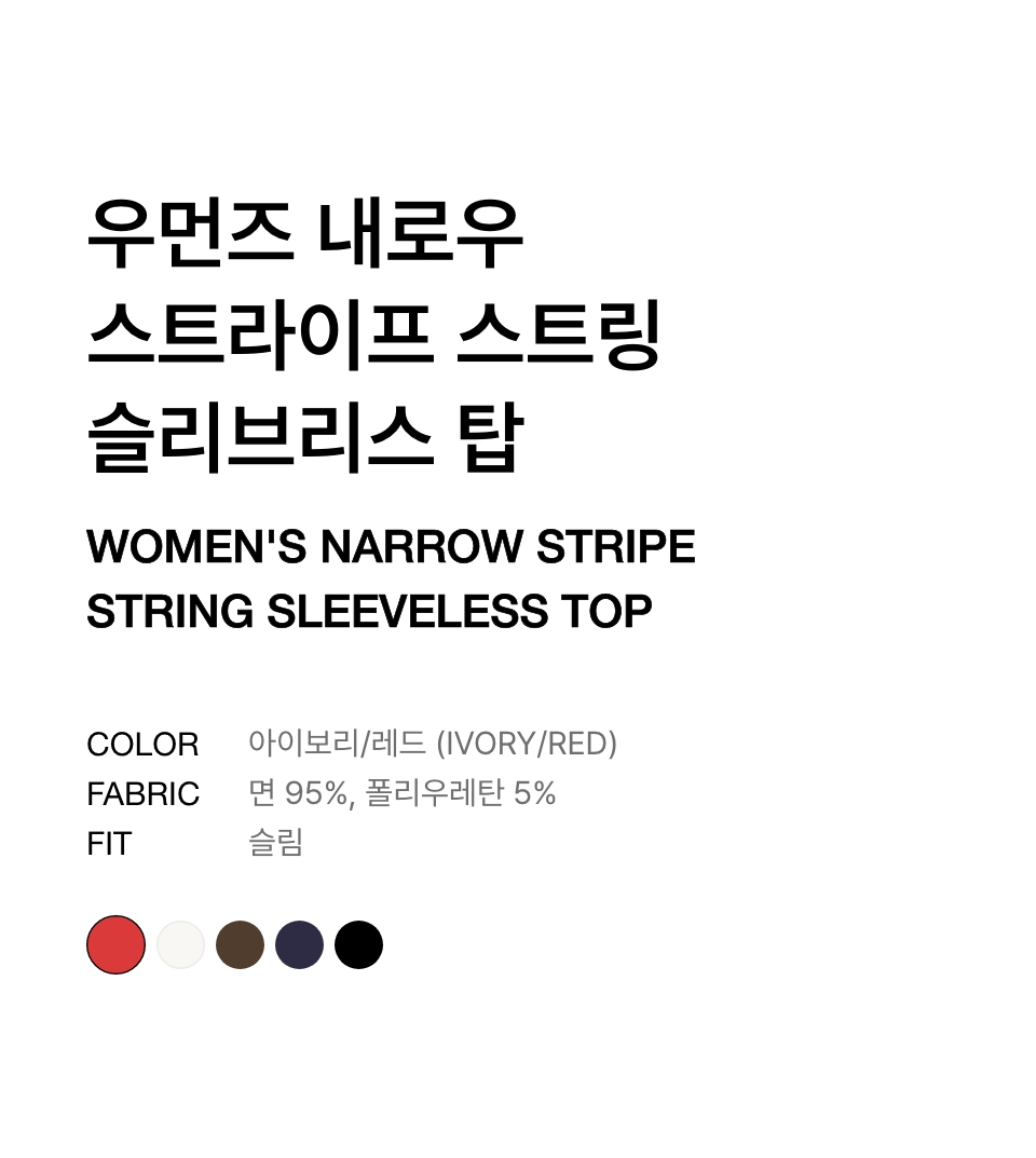 우먼즈 내로우 스트라이프 스트링 슬리브리스 탑 [아이보리/레드]
