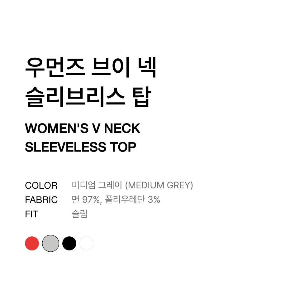 우먼즈 브이 넥 슬리브리스 탑 [미디엄 그레이]