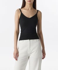 우먼즈 브이 넥 슬리브리스 탑 [블랙]
