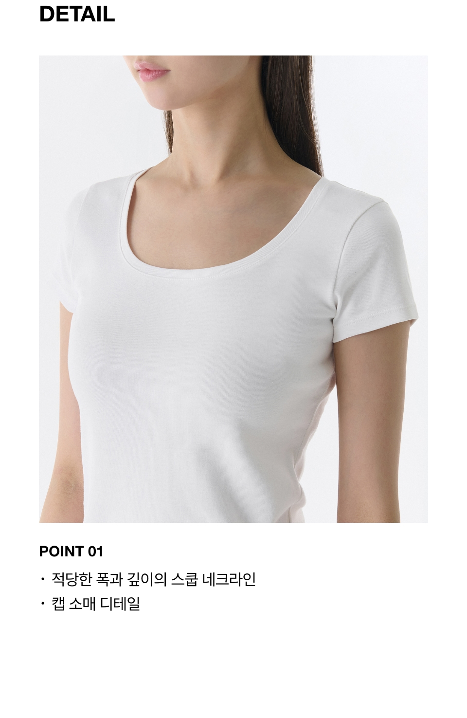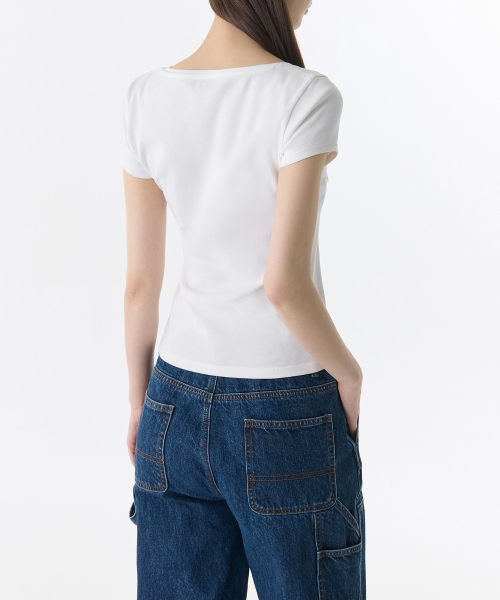 우먼즈 슬림 스퀘어 넥 티셔츠 [화이트]