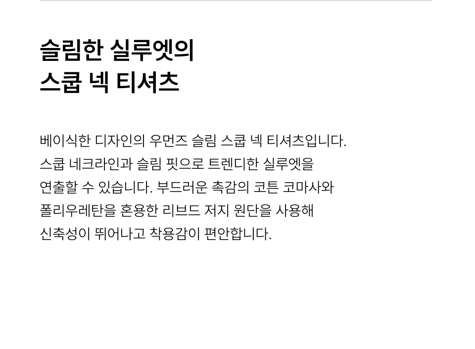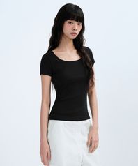 우먼즈 슬림 스쿱 넥 티셔츠 [블랙]