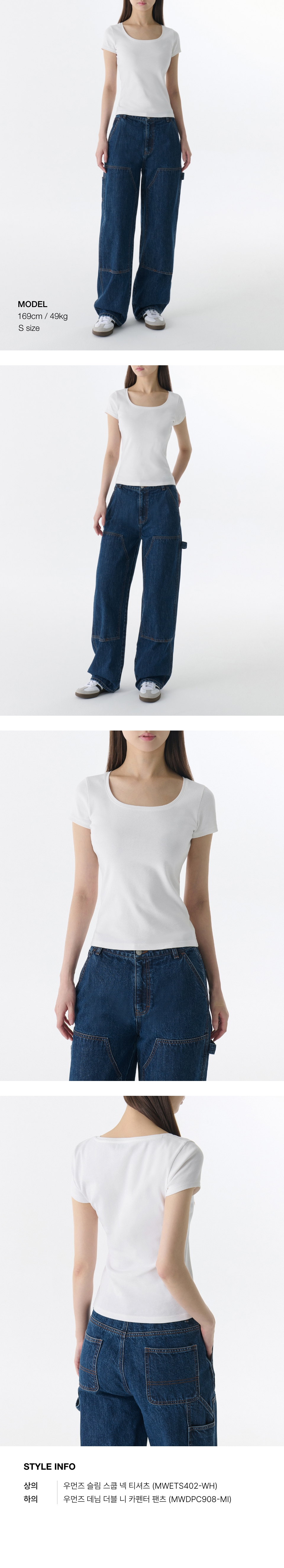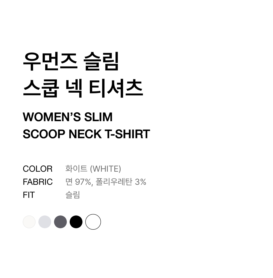 우먼즈 슬림 스쿱 넥 티셔츠 [화이트]