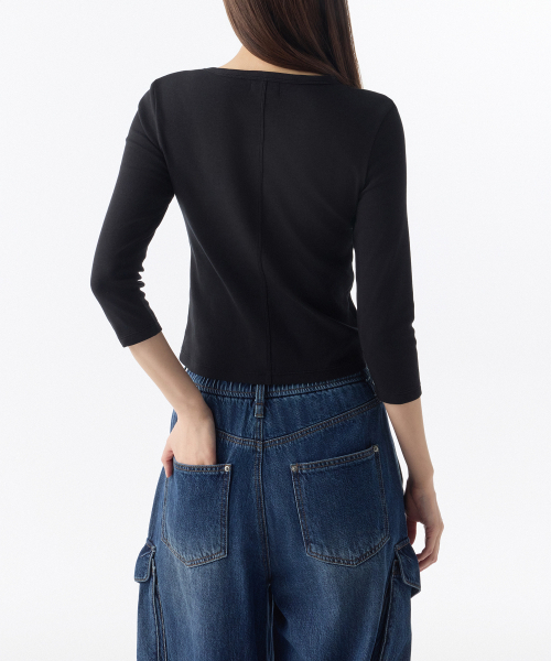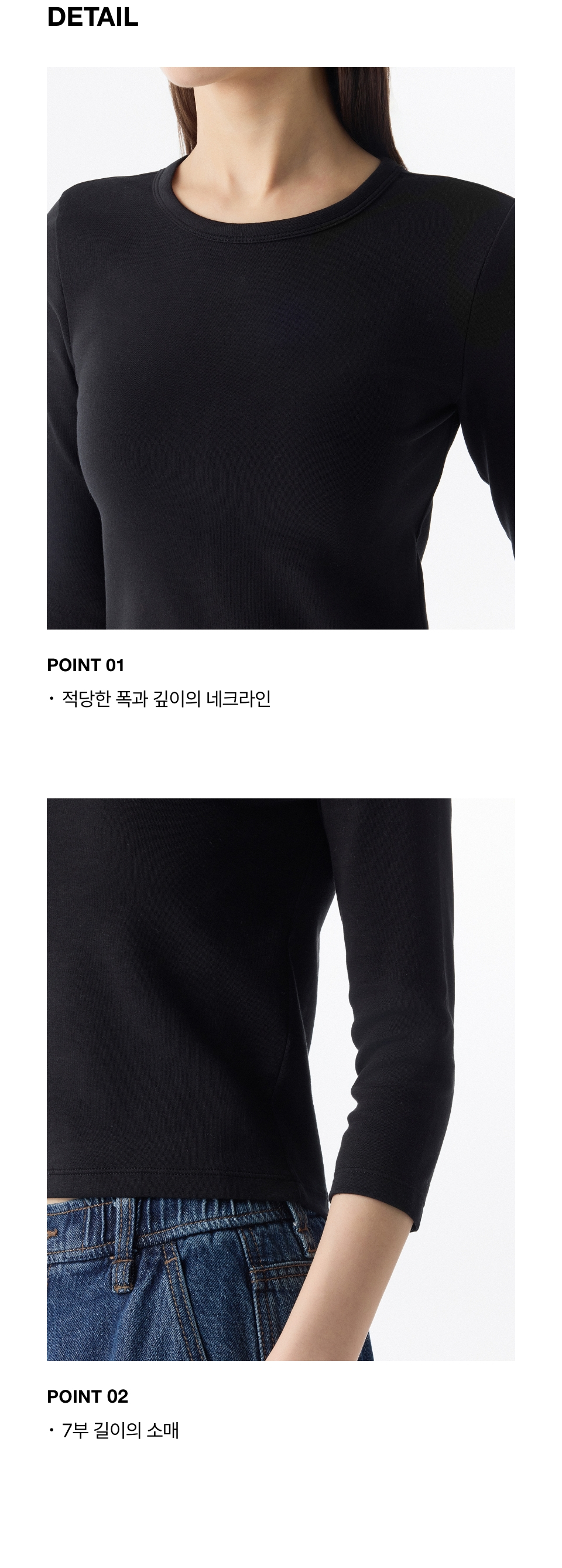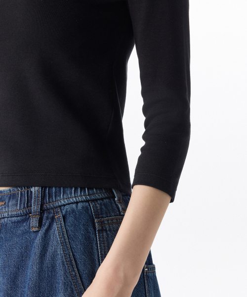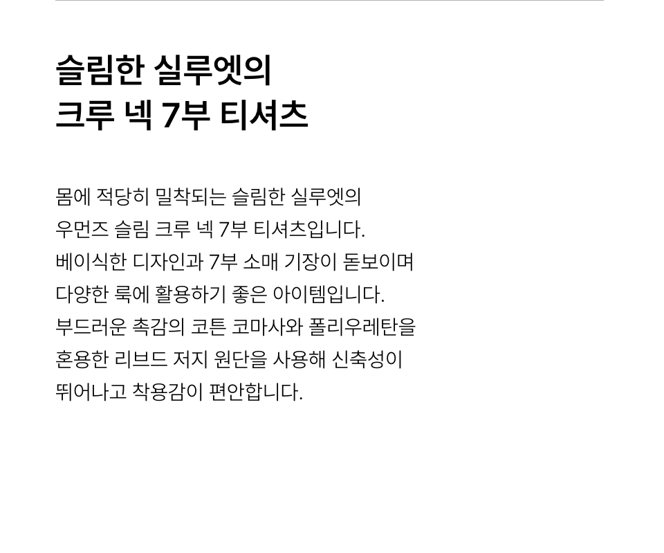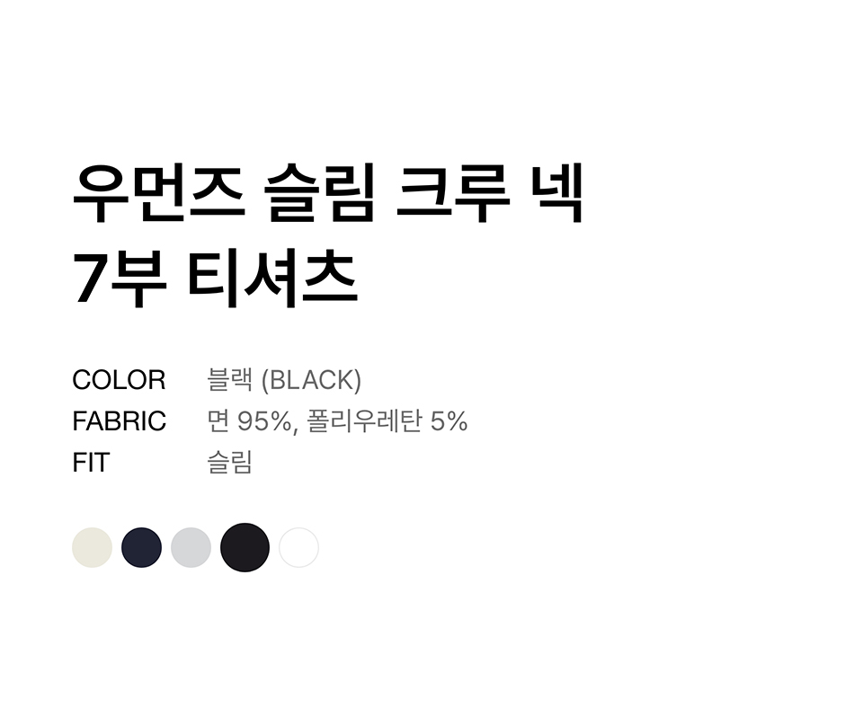 우먼즈 슬림 크루 넥 7부 티셔츠 [블랙]