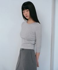 우먼즈 슬림 크루 넥 7부 티셔츠 [미디엄 그레이]
