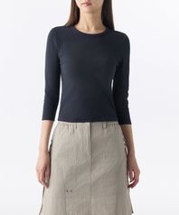 우먼즈 슬림 크루 넥 7부 티셔츠 [다크 네이비]