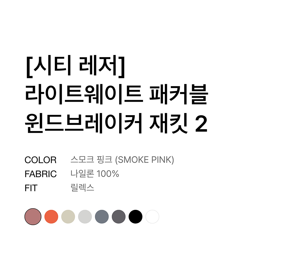 [시티 레저] 라이트웨이트 패커블 윈드브레이커 재킷 2 [스모크 핑크]
